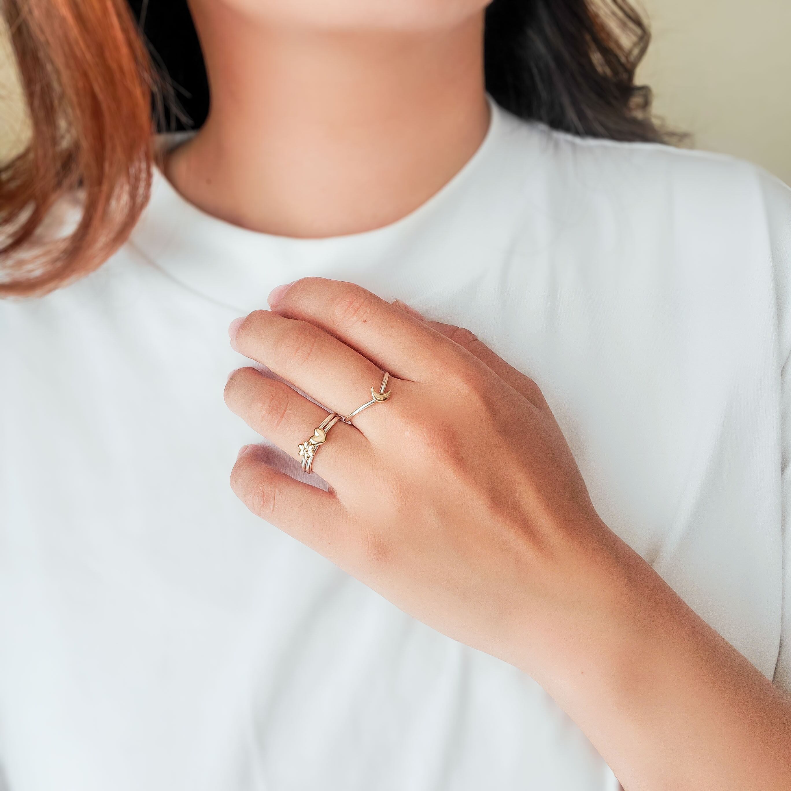 柔らかな丸みを帯びたフォルムが、指先にさりげない愛嬌を添えてくれます。華奢なシルエットなので、重ね着けにもぴったり。毎日身に着けても飽きのこないデザインです。