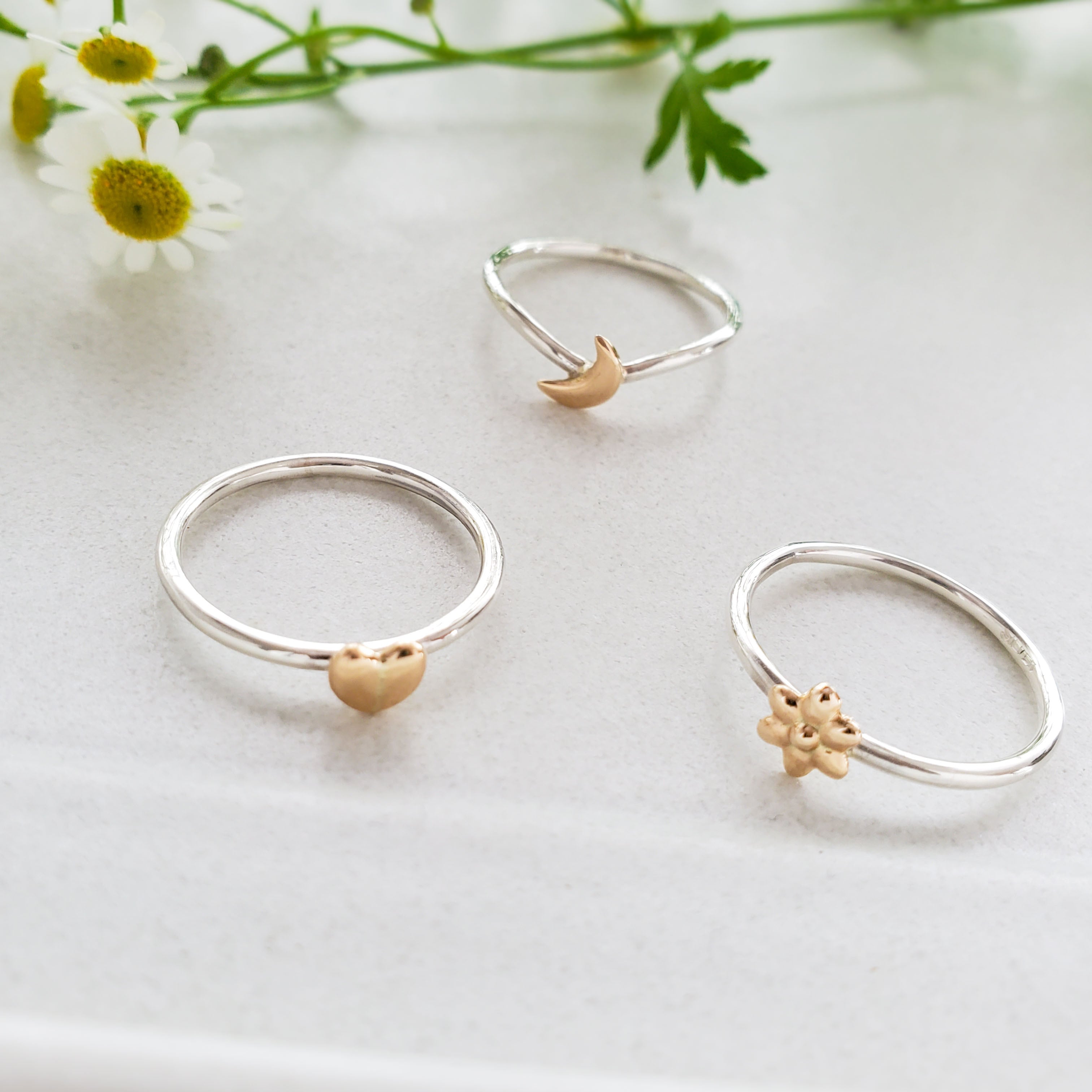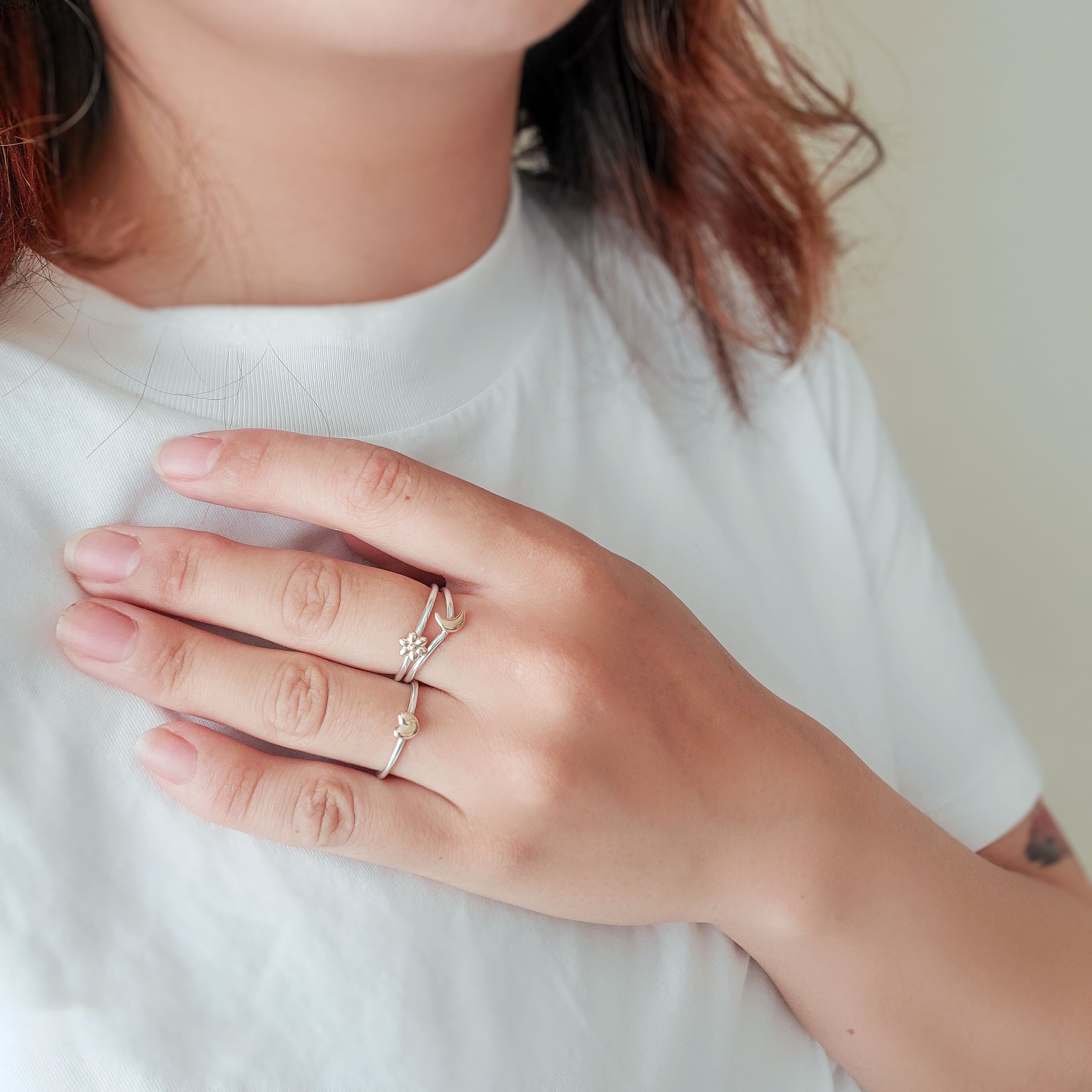 K10お月様リング|シルバー×ゴールド ミックス|華奢で可愛い 異素材 K10 10金 Silver リング 指輪 月 シンプル ワンポイント カジュアル 毎日使い プレゼント