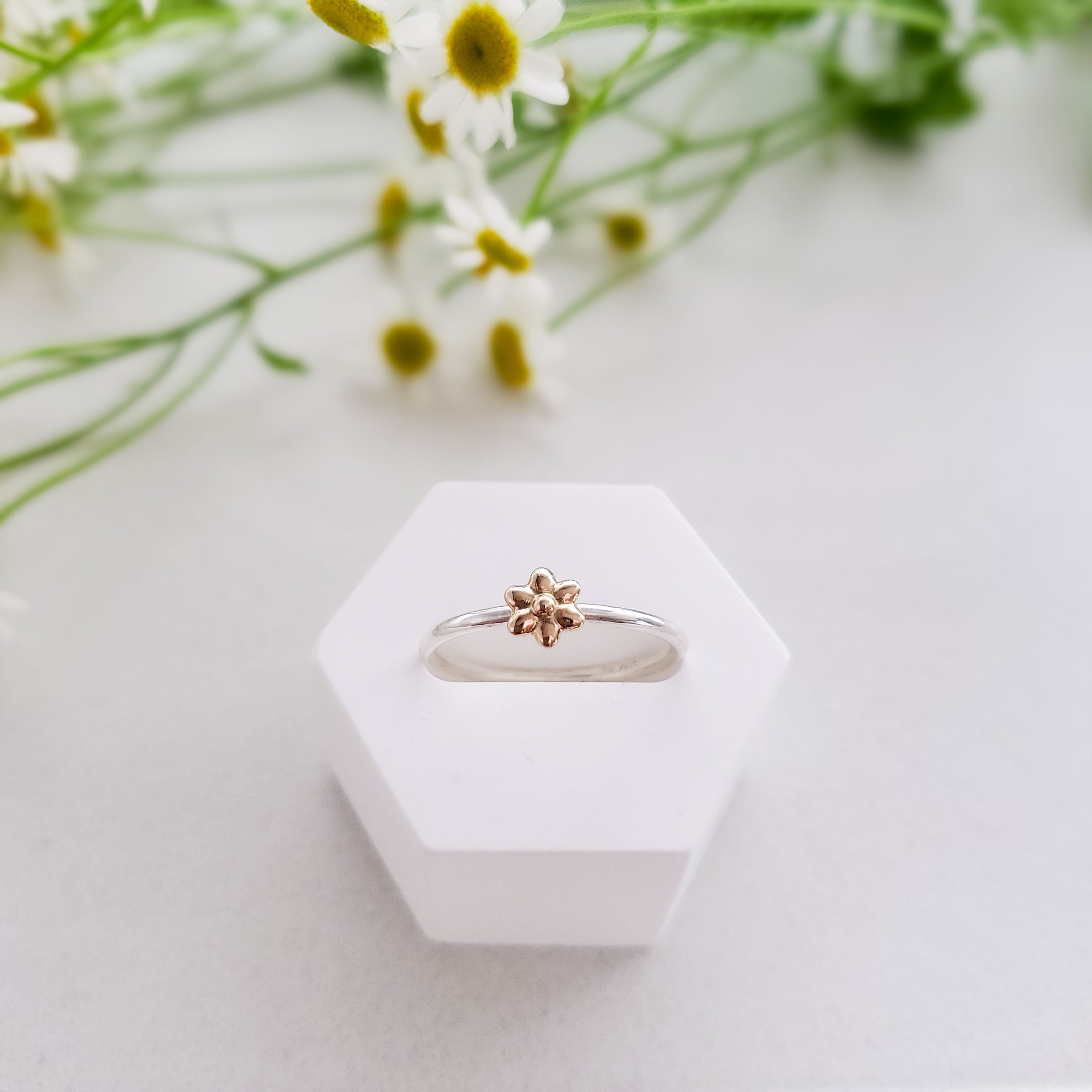 K10お花リング|シルバー×ゴールド ミックス|華奢で可愛い 異素材 K10 10金 Silver リング 指輪 花 フラワー シンプル ワンポイント カジュアル 毎日使い プレゼント | OAKNOKI JEWELRY