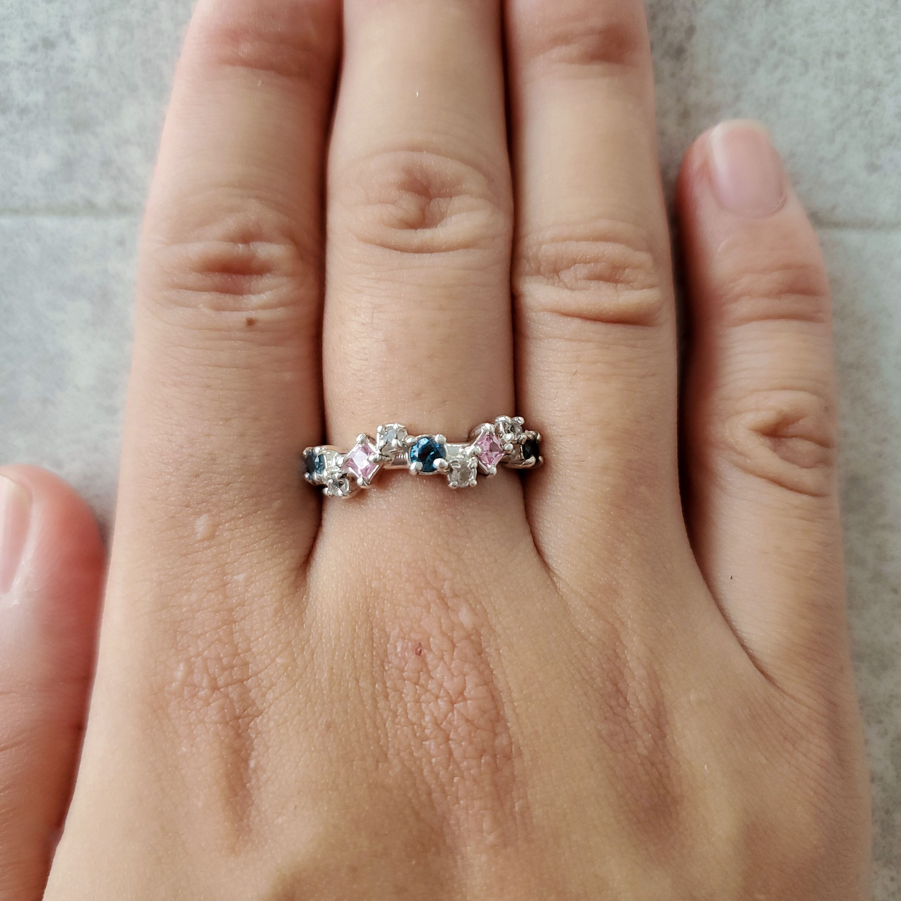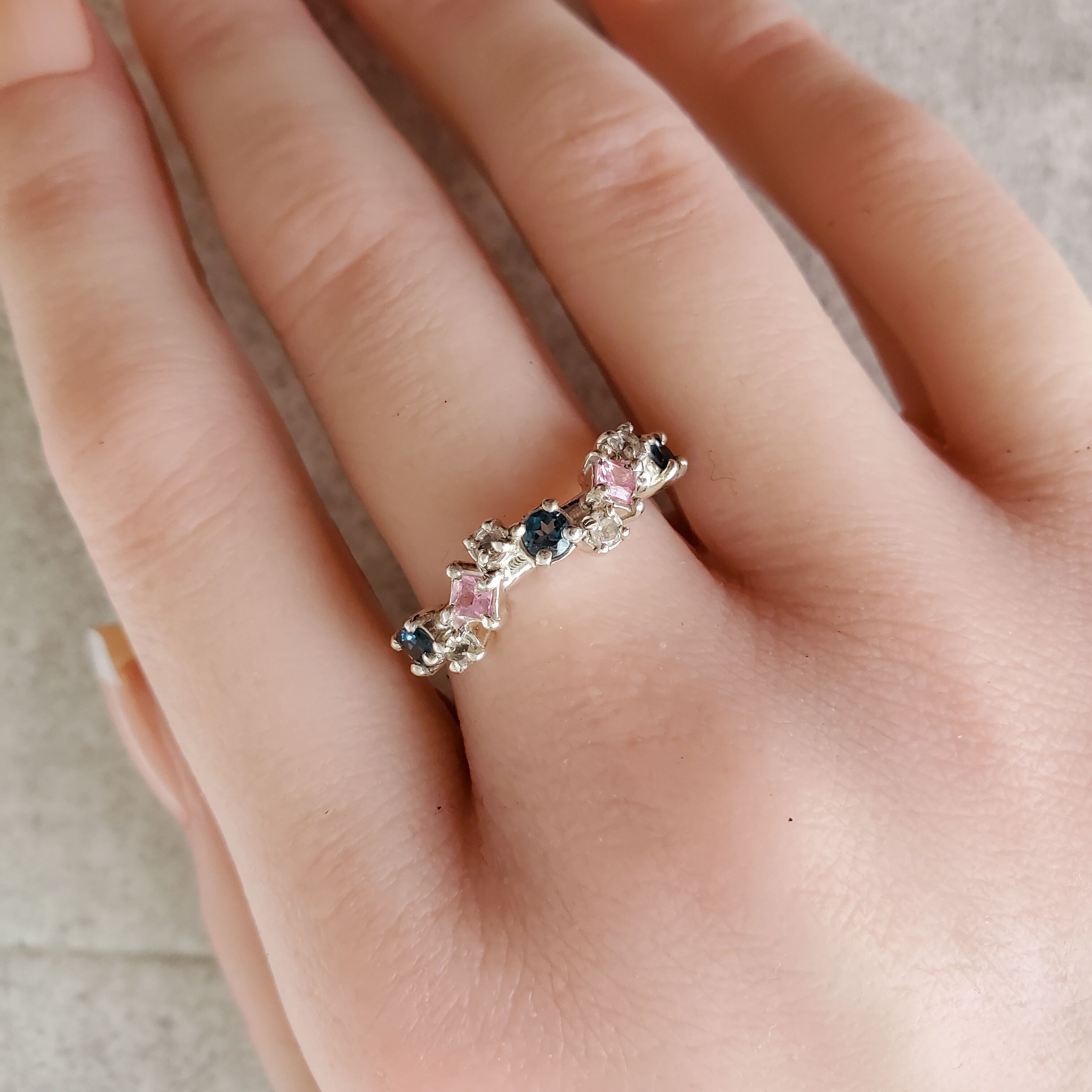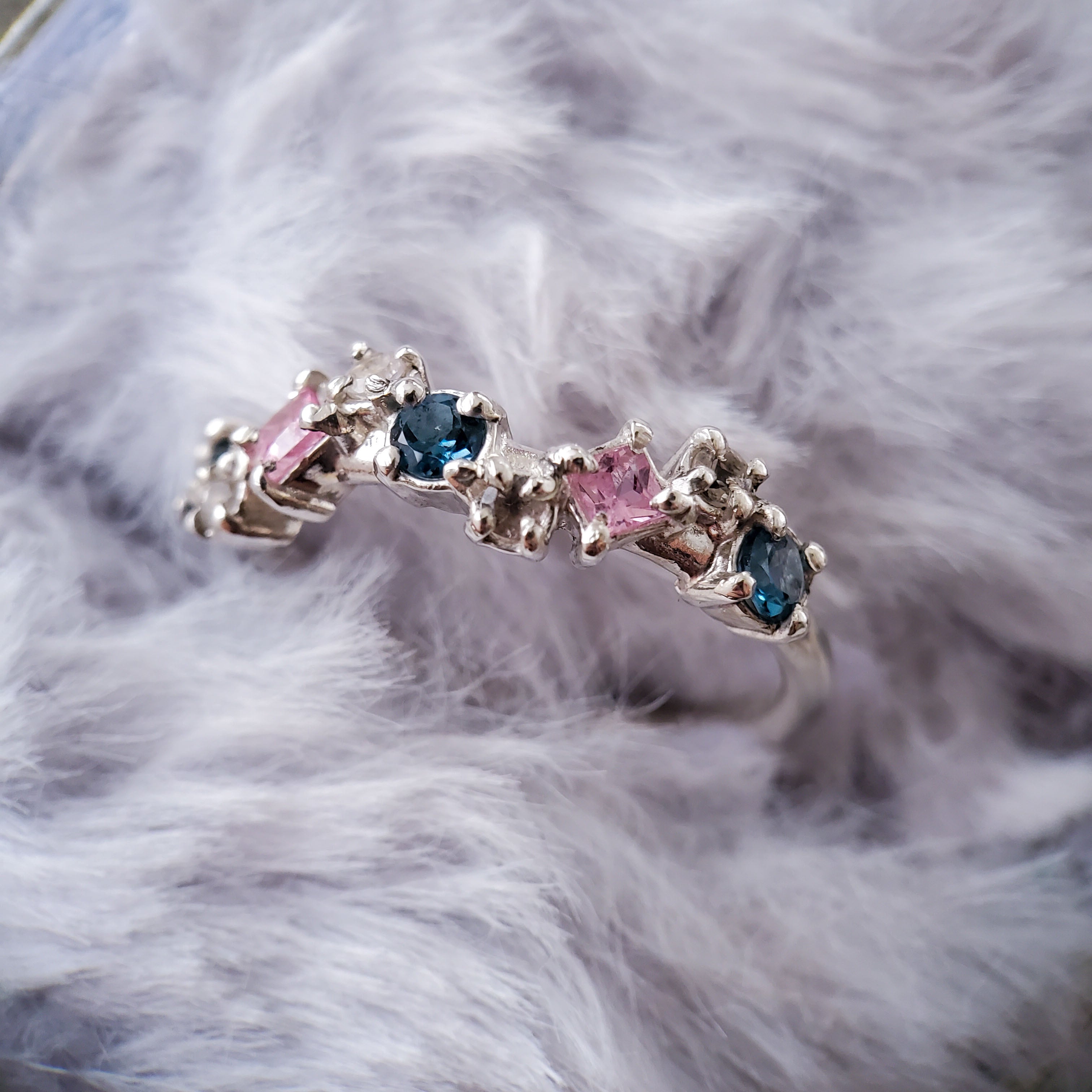 Silver925、ピンクサファイア、ロンドンブルートパーズ、モルガナイト