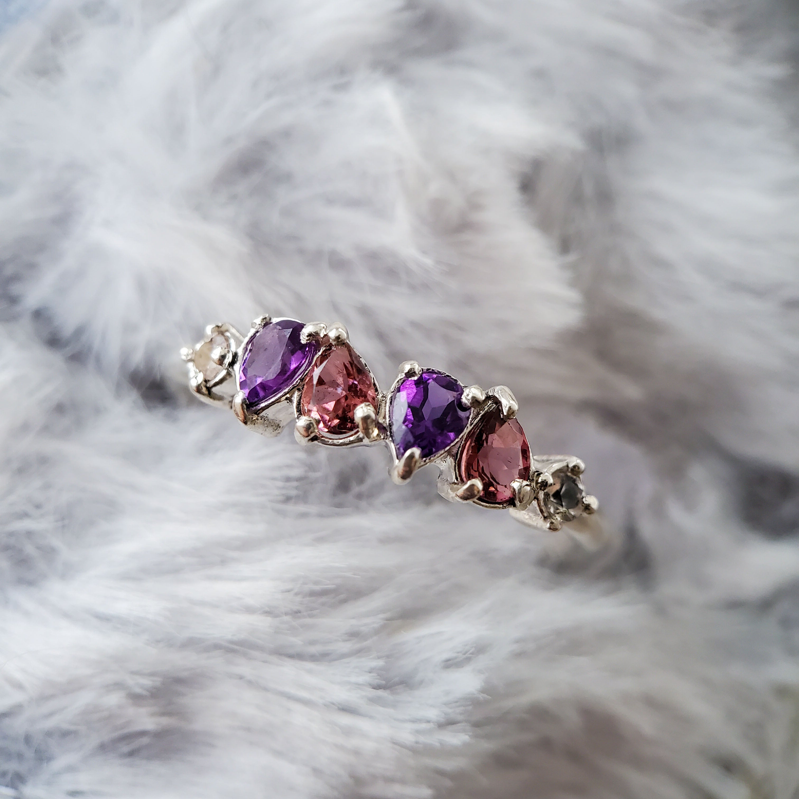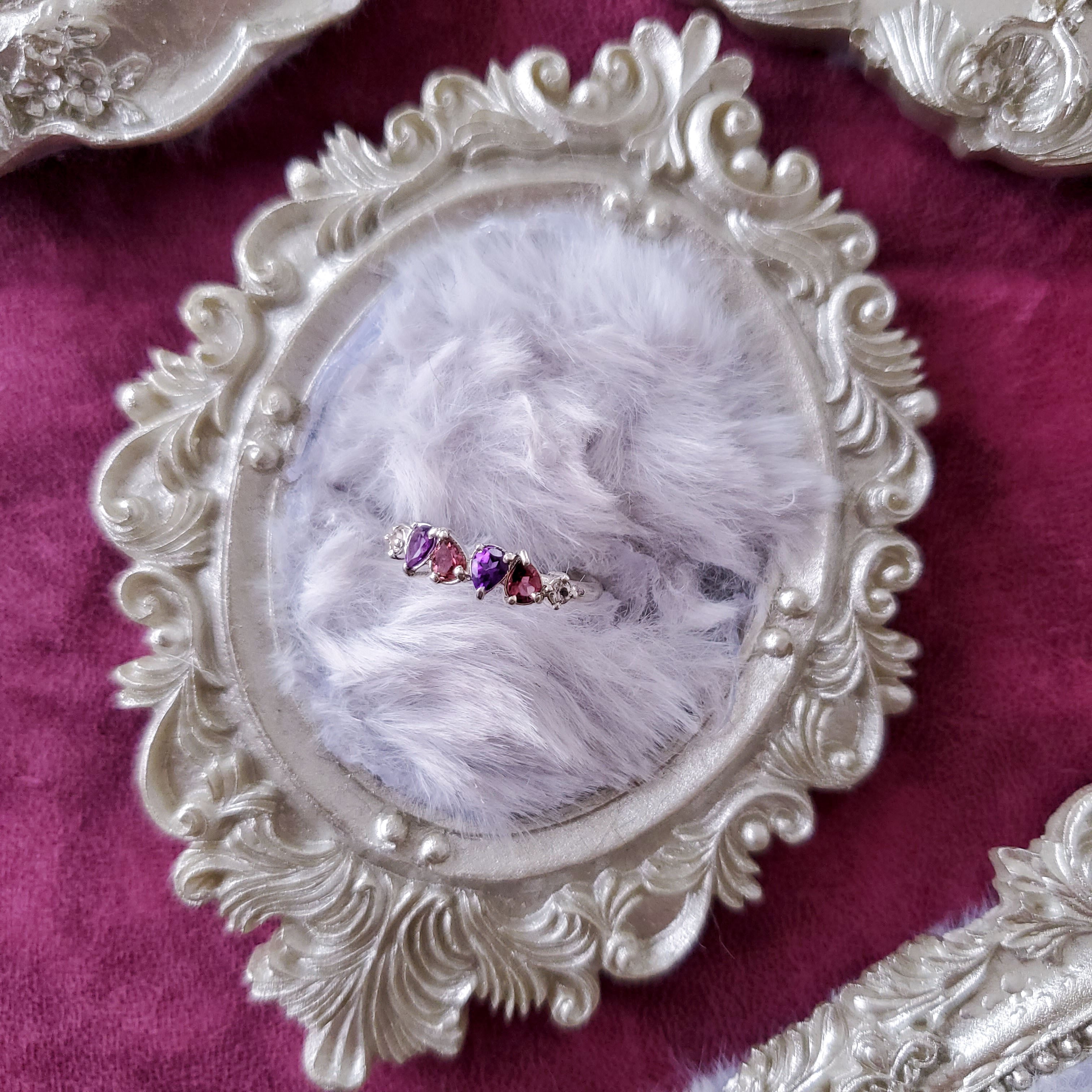 しずくのようなペアシェイプのピンクトルマリンとアメシストが、