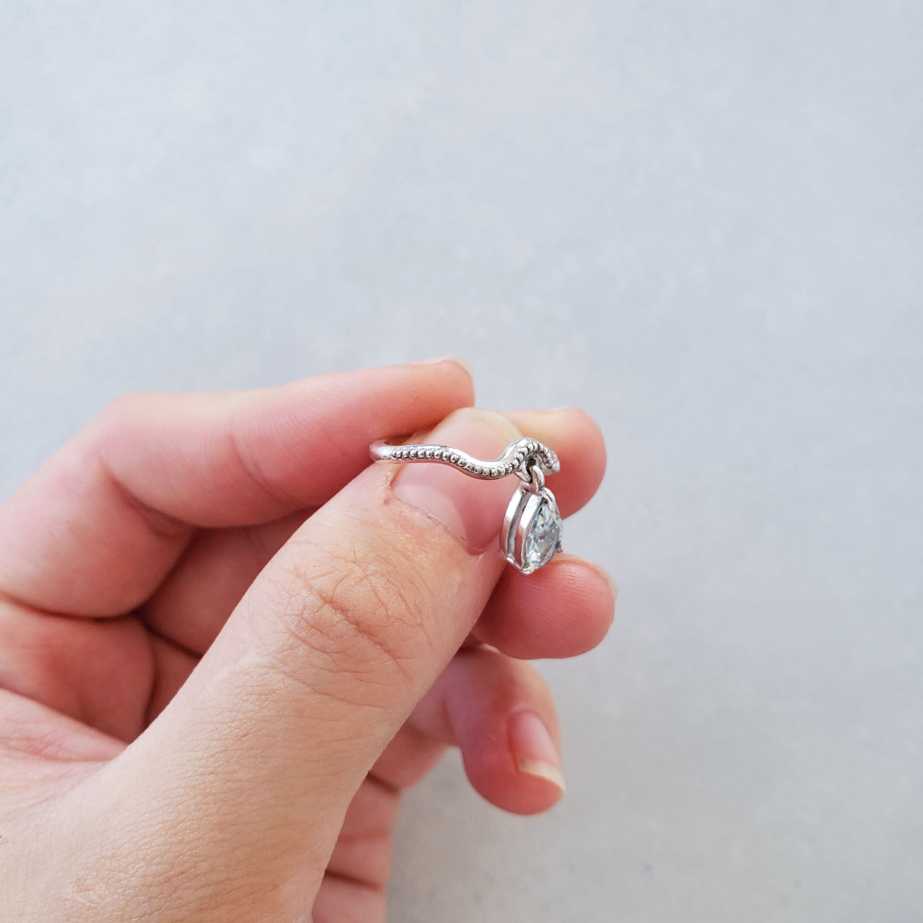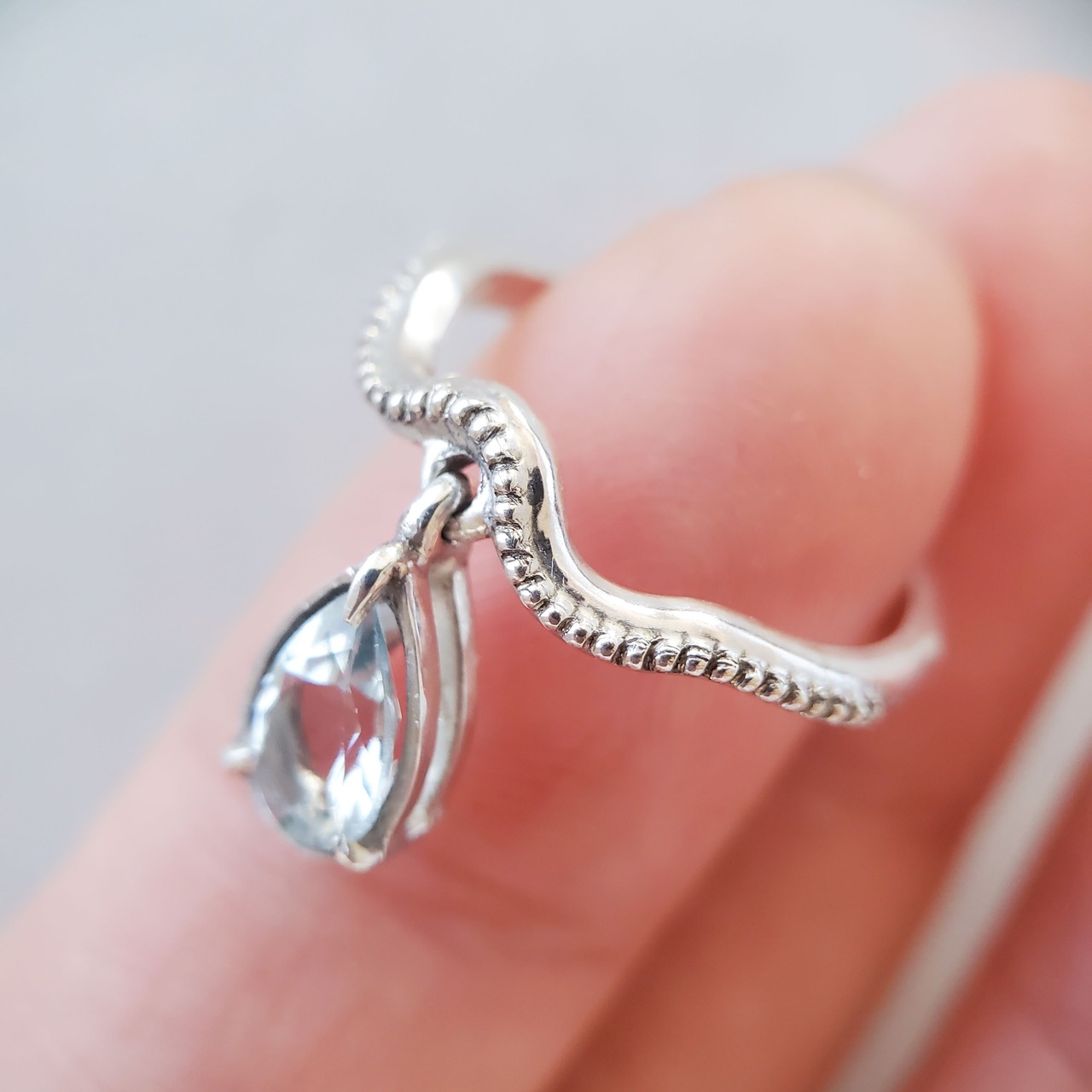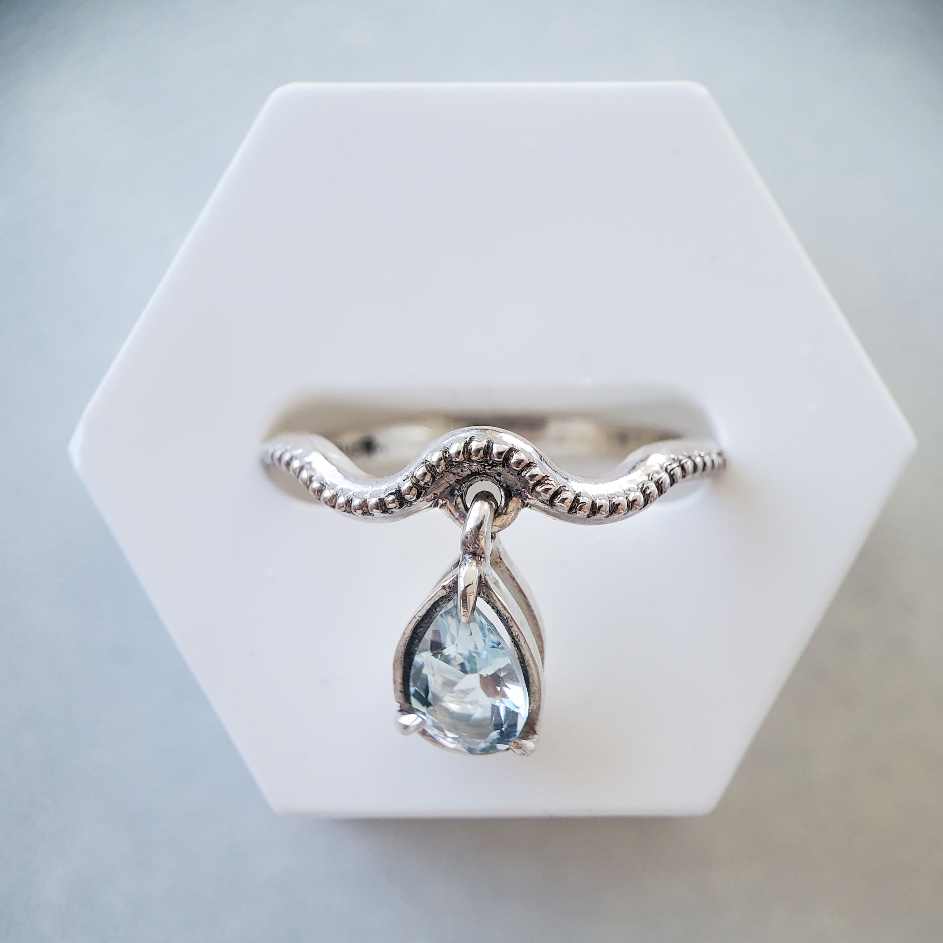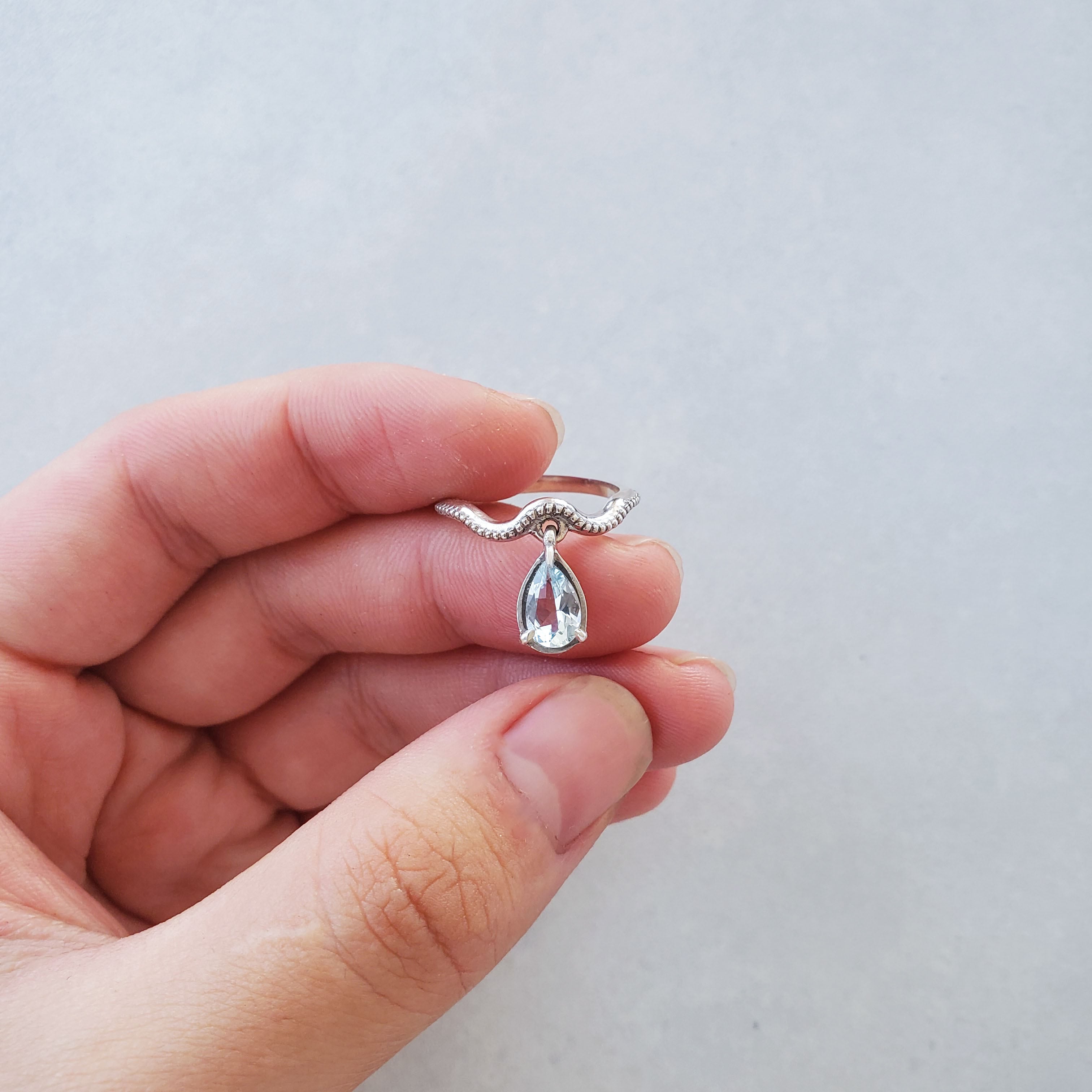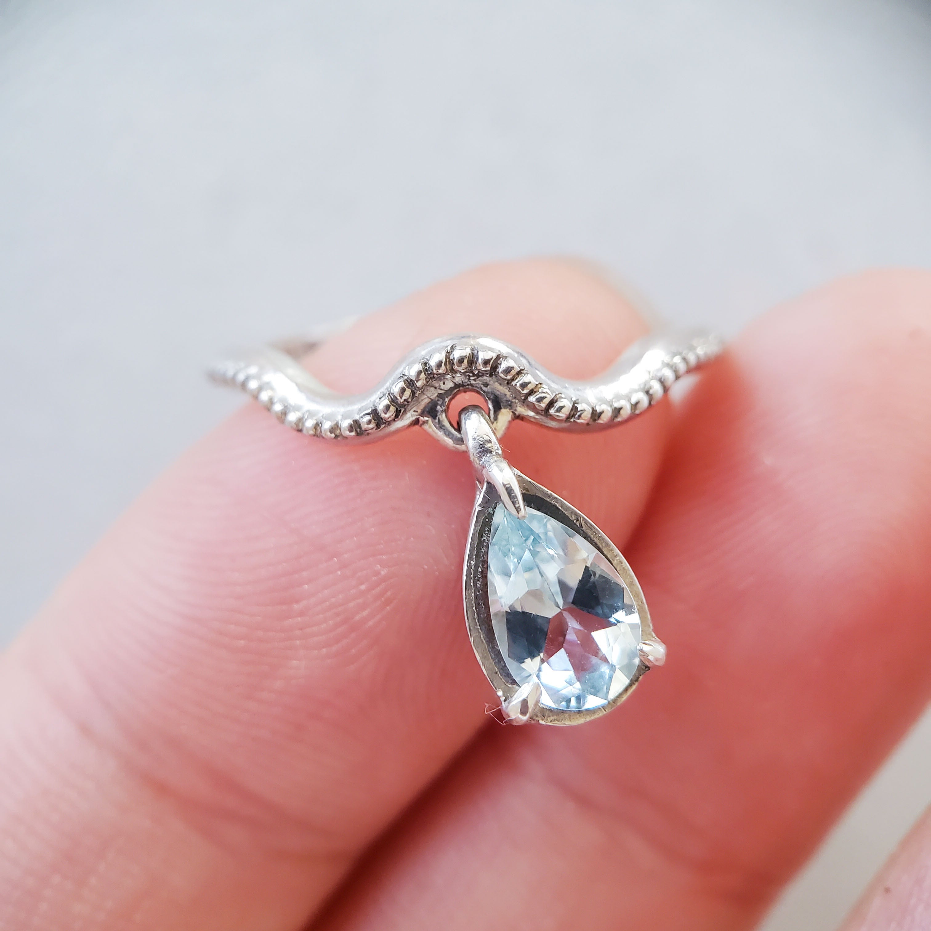 波のようにゆらめくラインに、ひと粒のアクアマリンが静かに揺れる――
