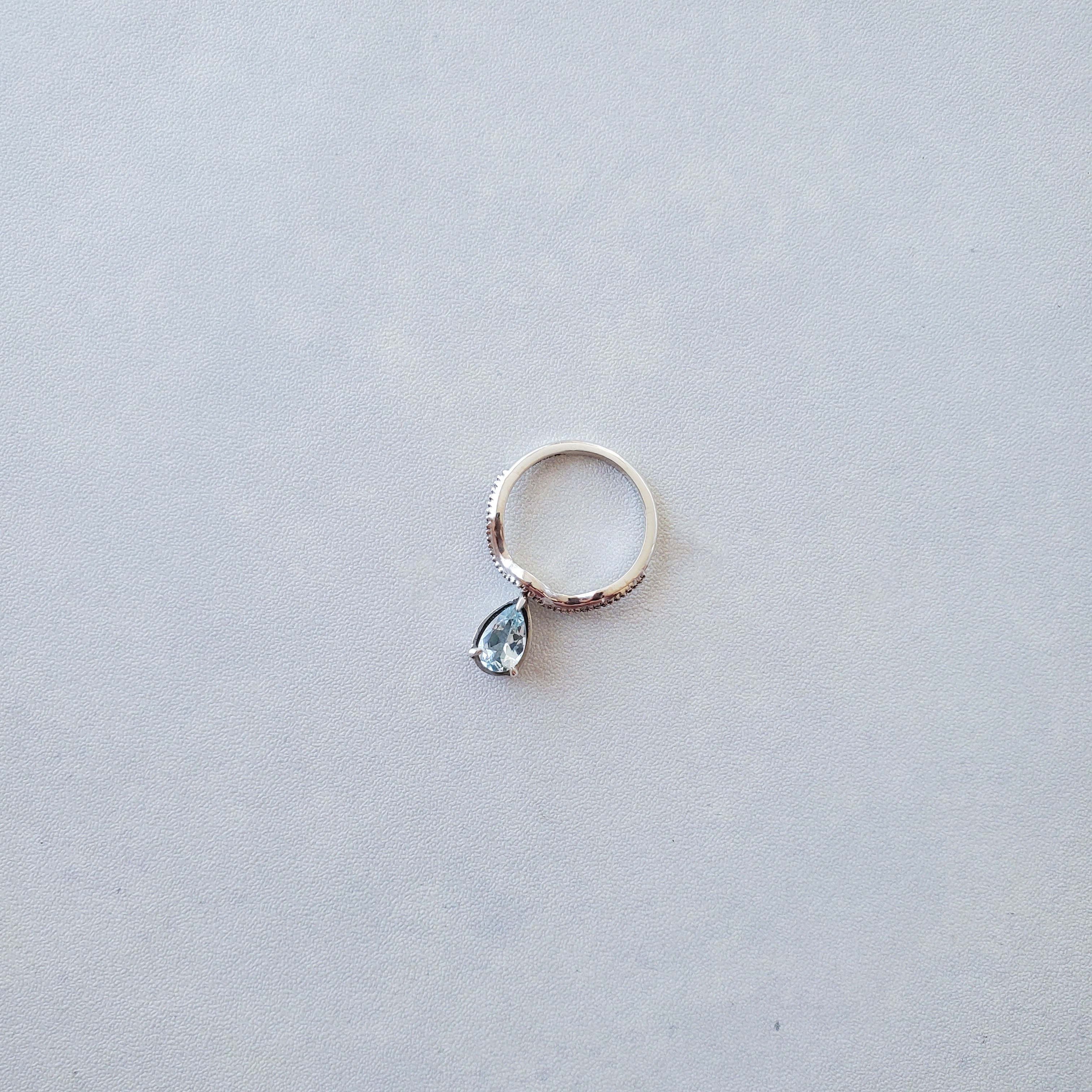 透明感のあるペアシェイプ(涙型)のアクアマリンが光を受け