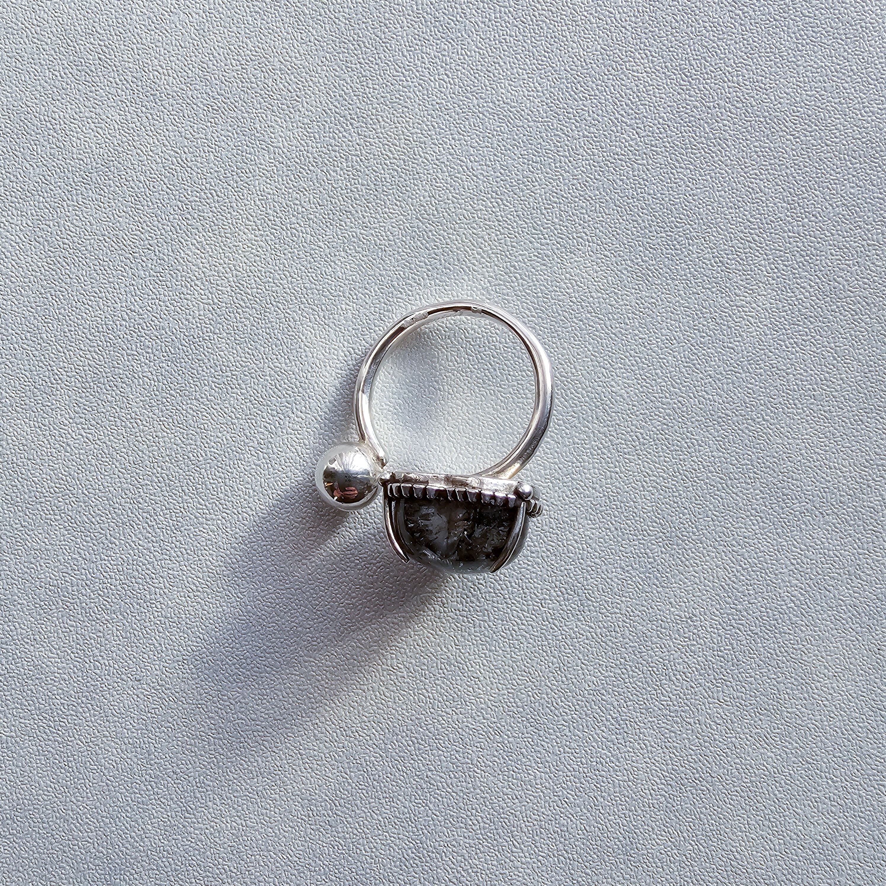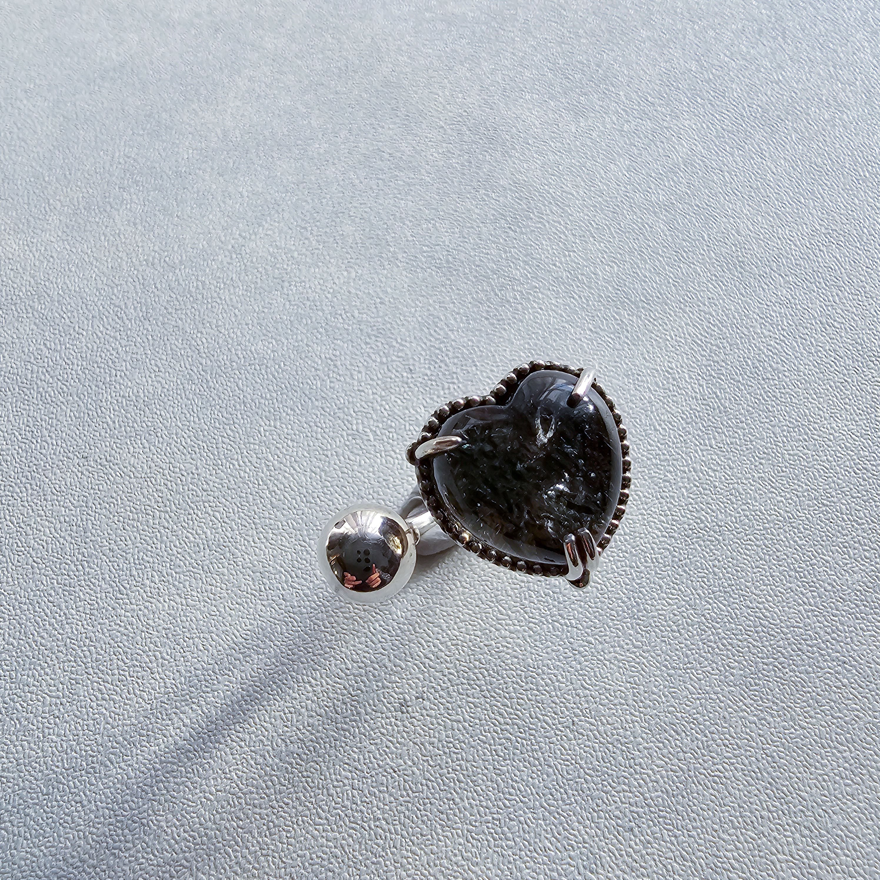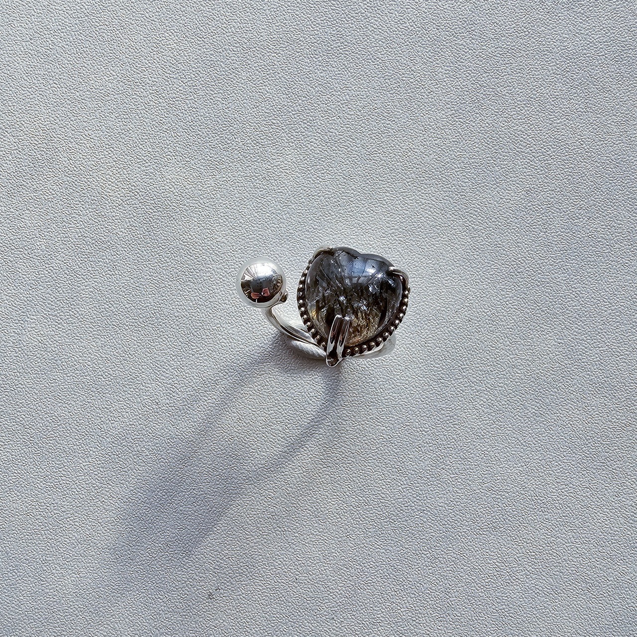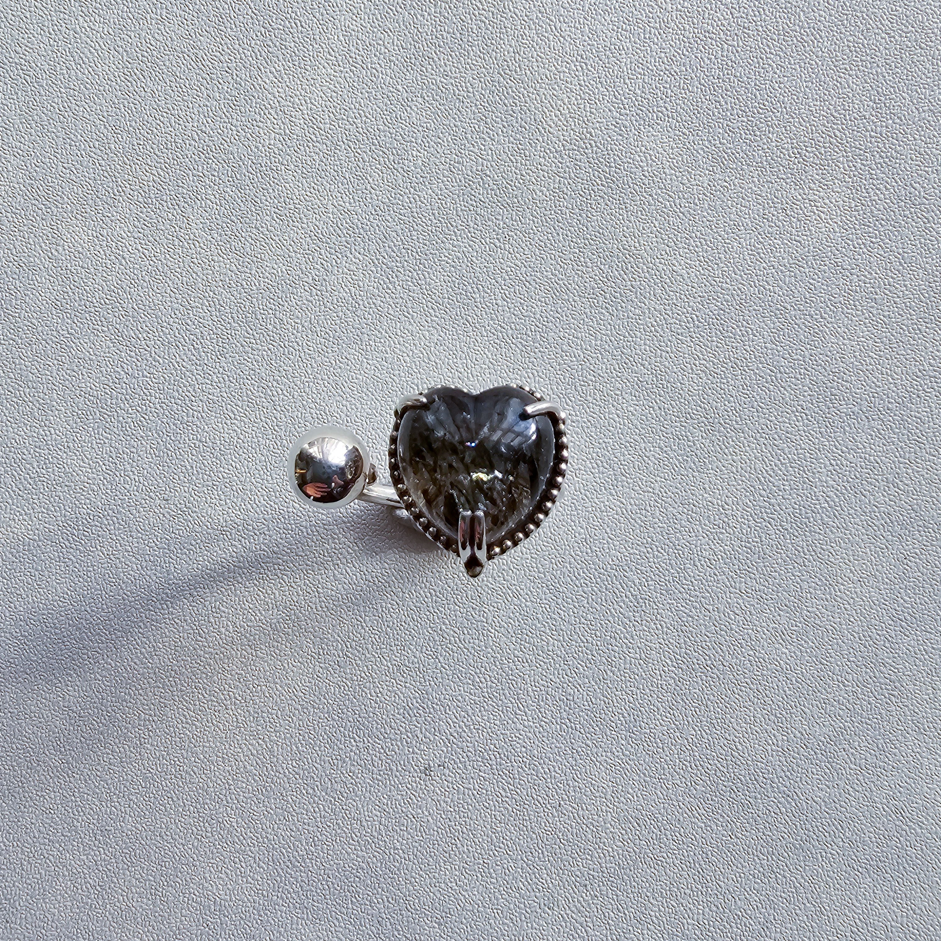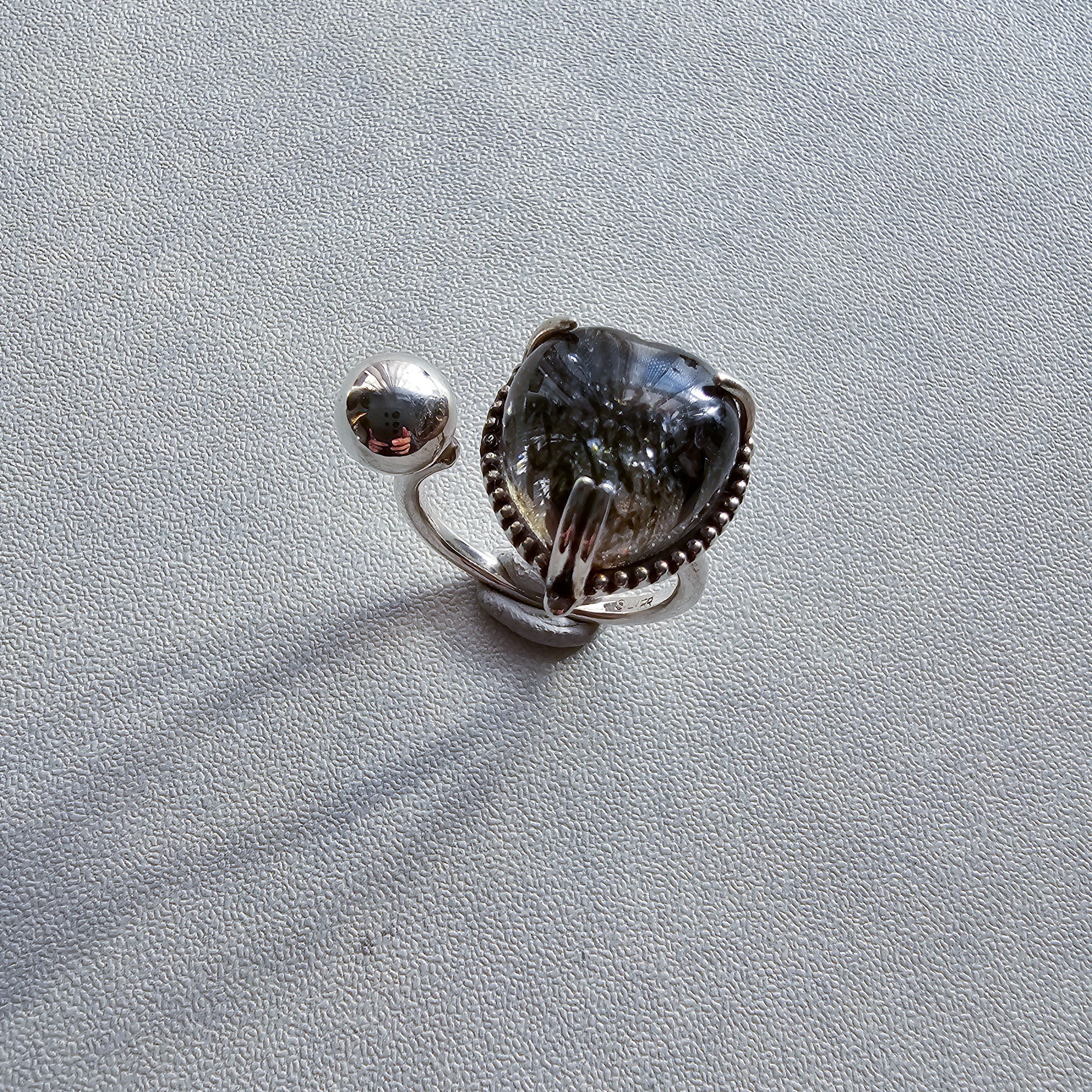 マイカインクォーツ ハートシェイプリング ブラック |石景をミル枠に閉じ込めた一点物シルバー Silver925
