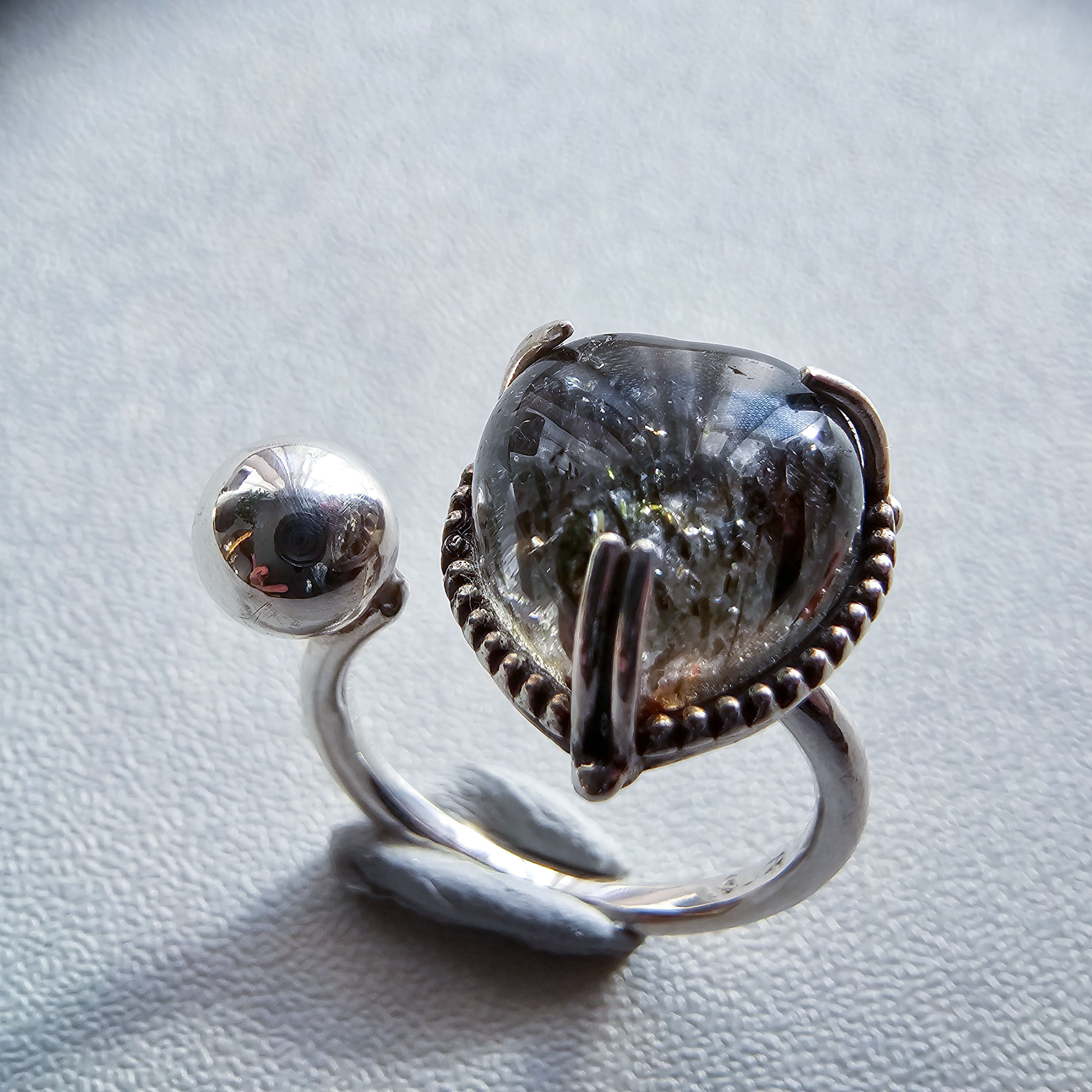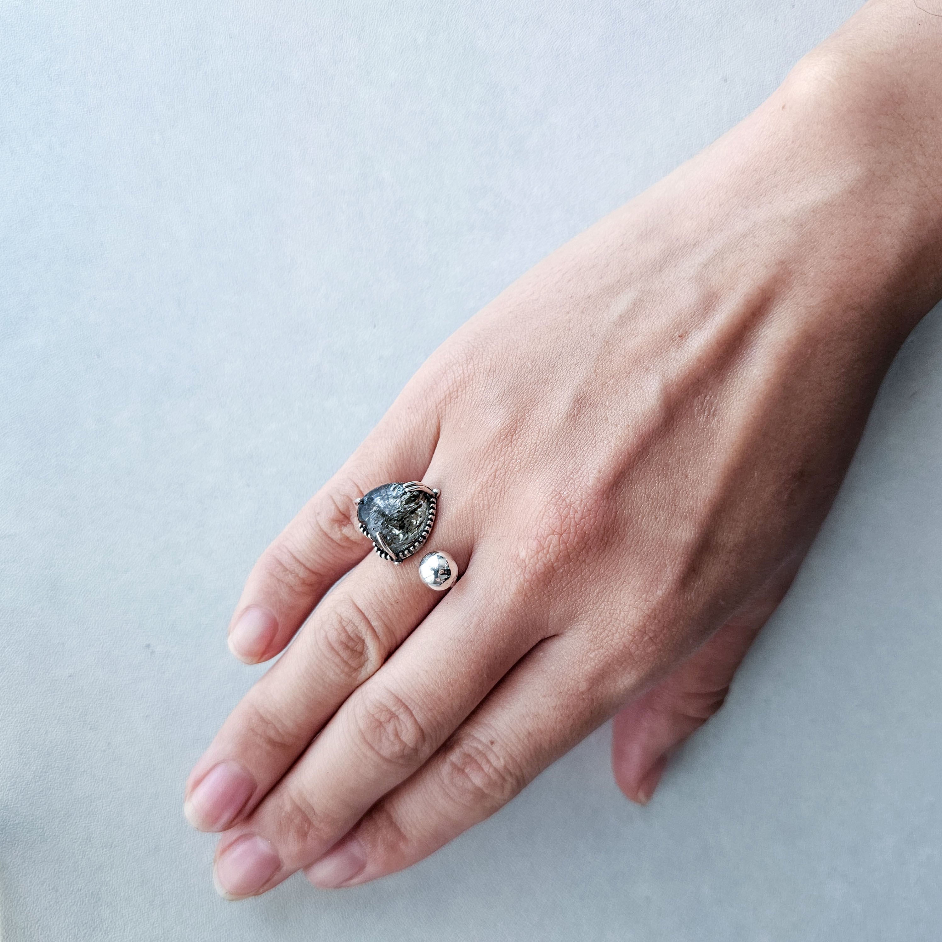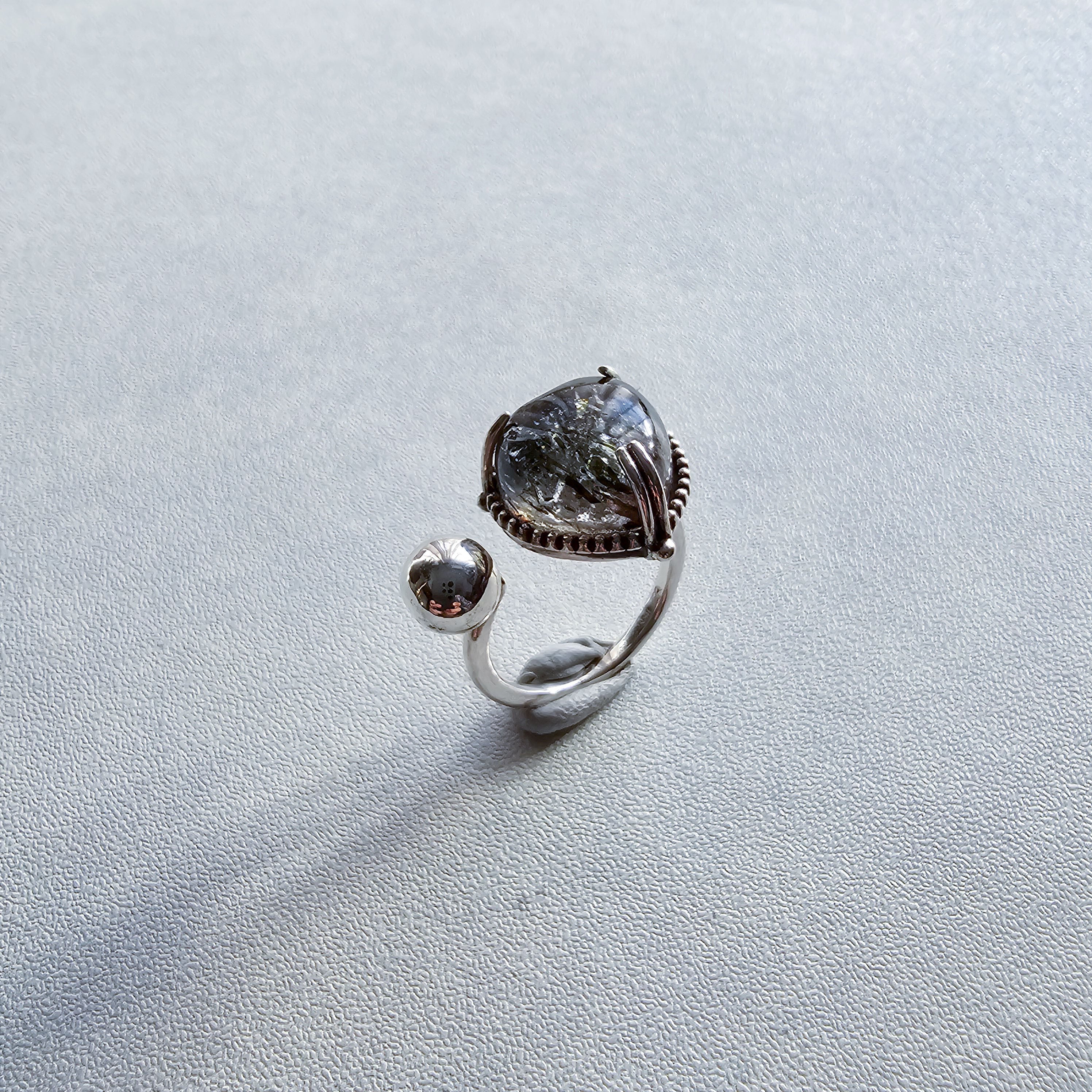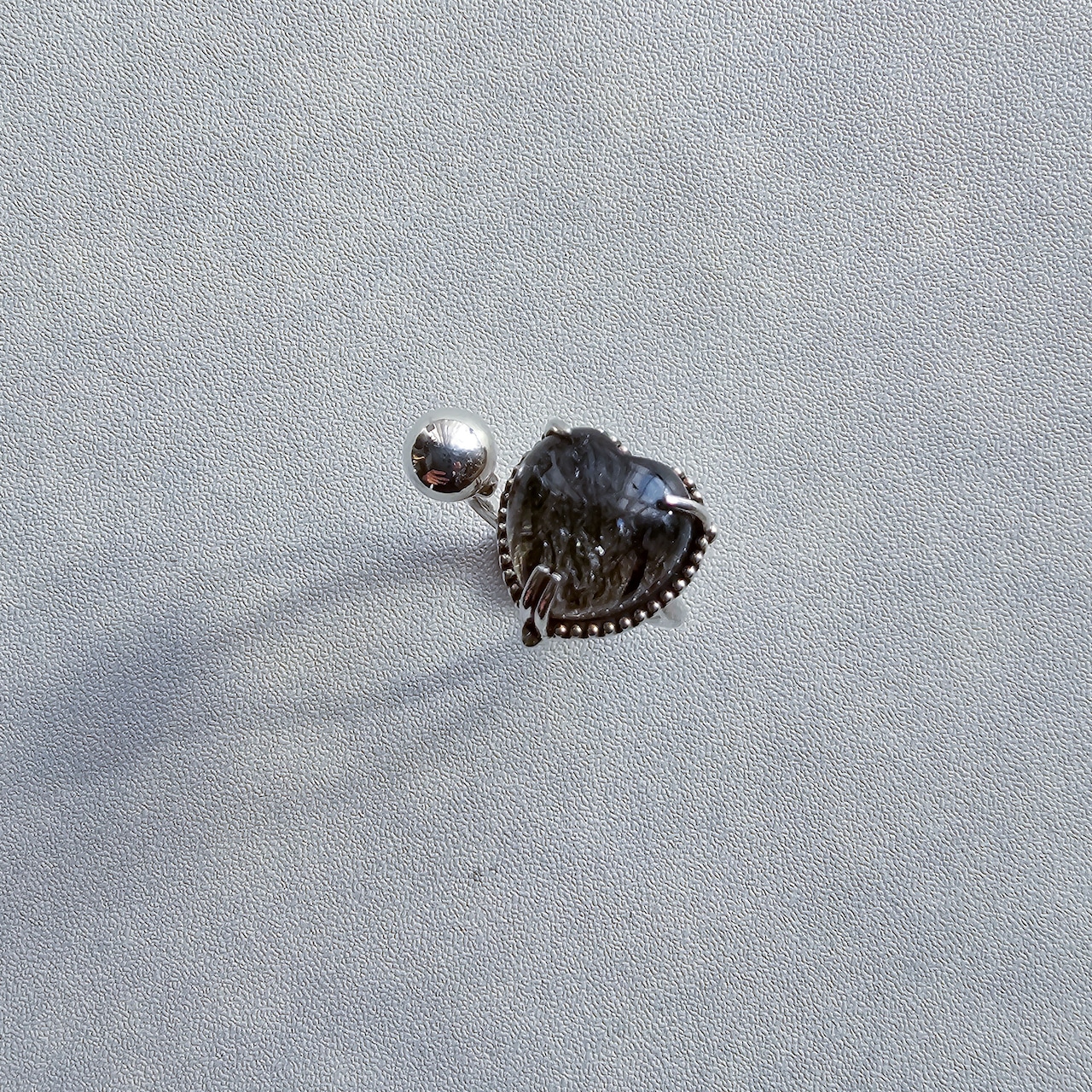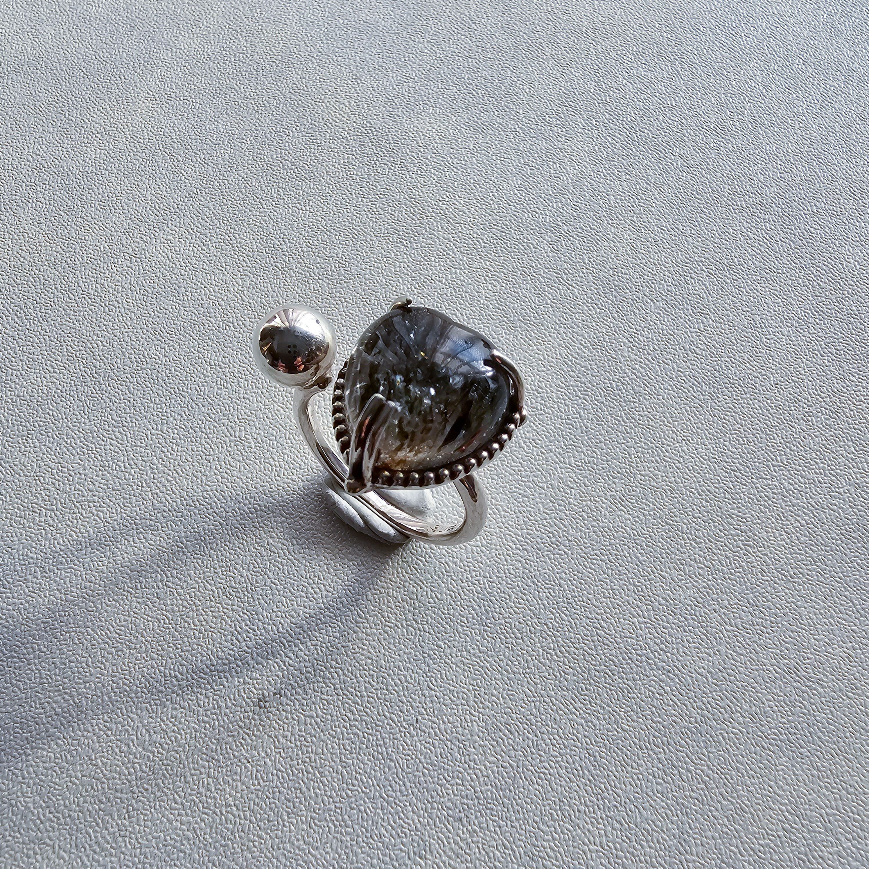 マイカインクォーツ ハートシェイプリング ブラック |石景をミル枠に閉じ込めた一点物シルバー Silver925