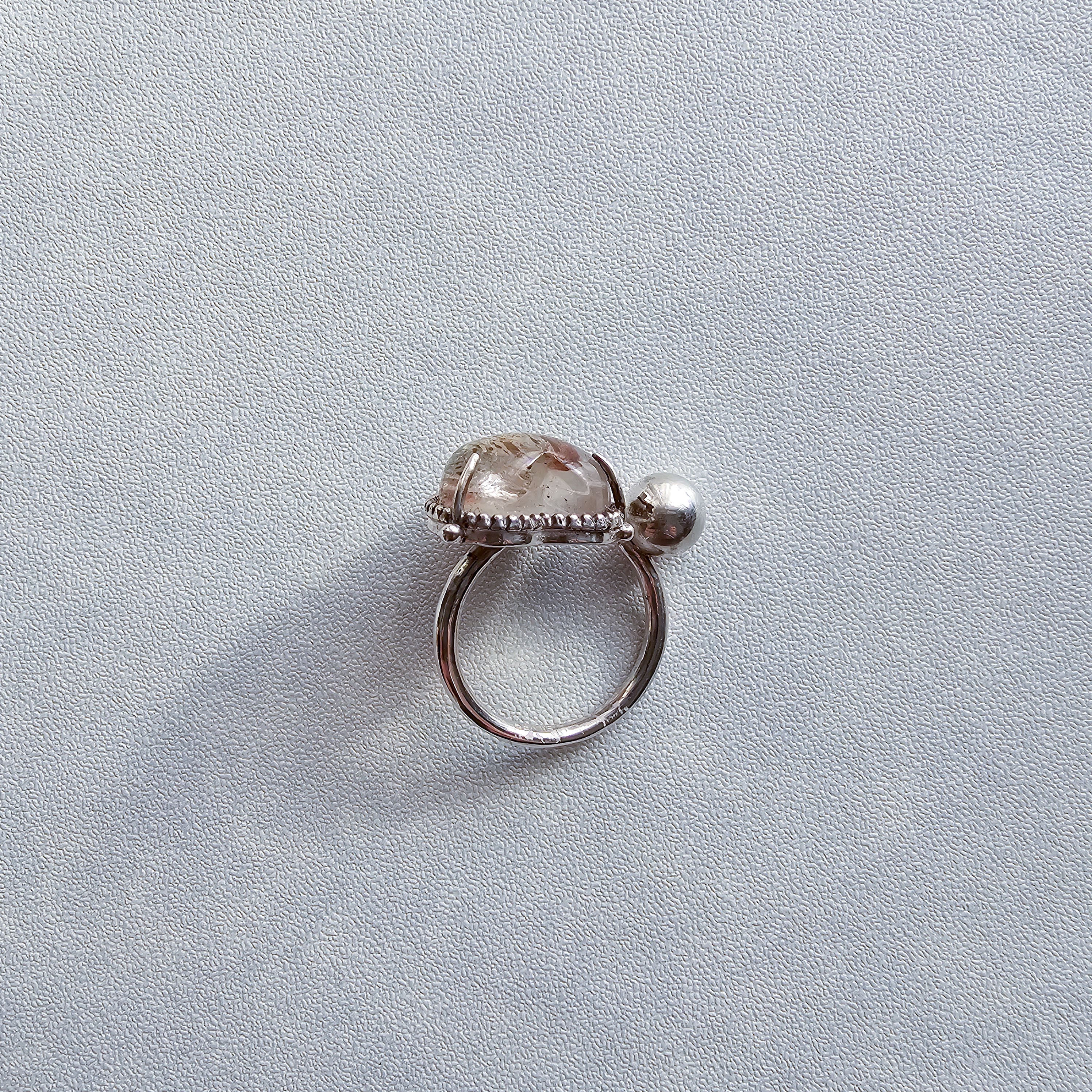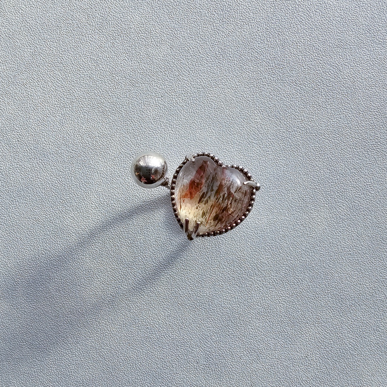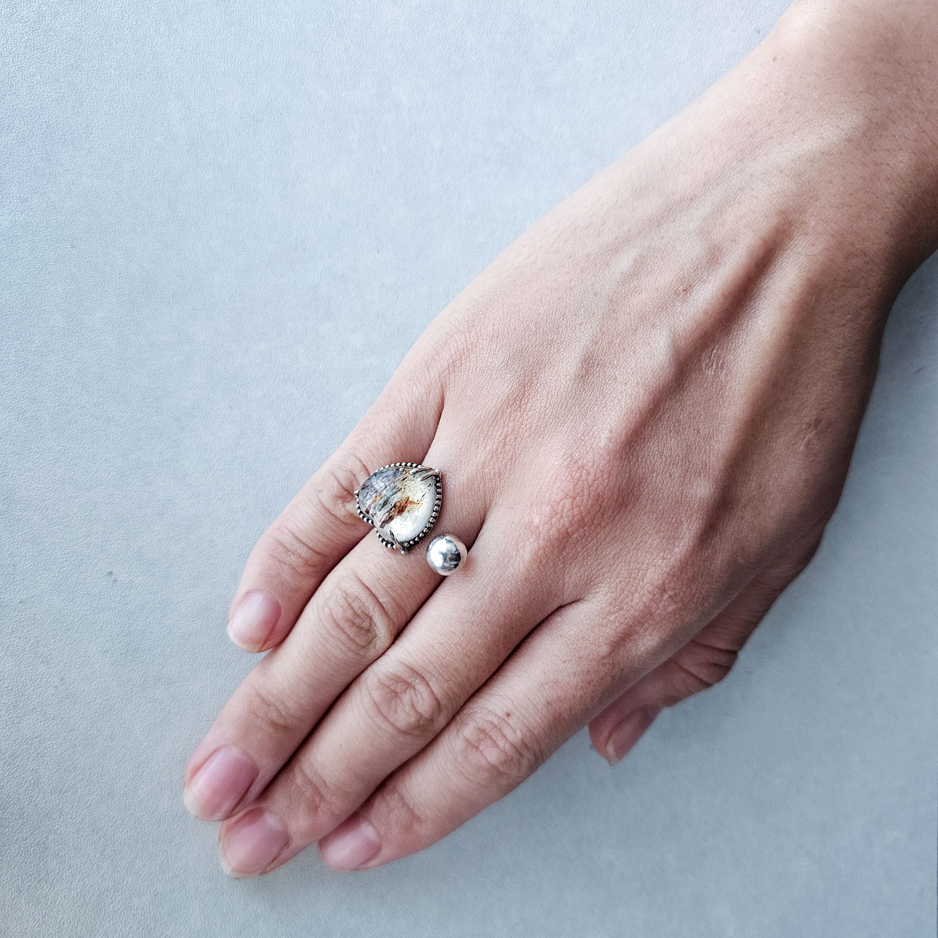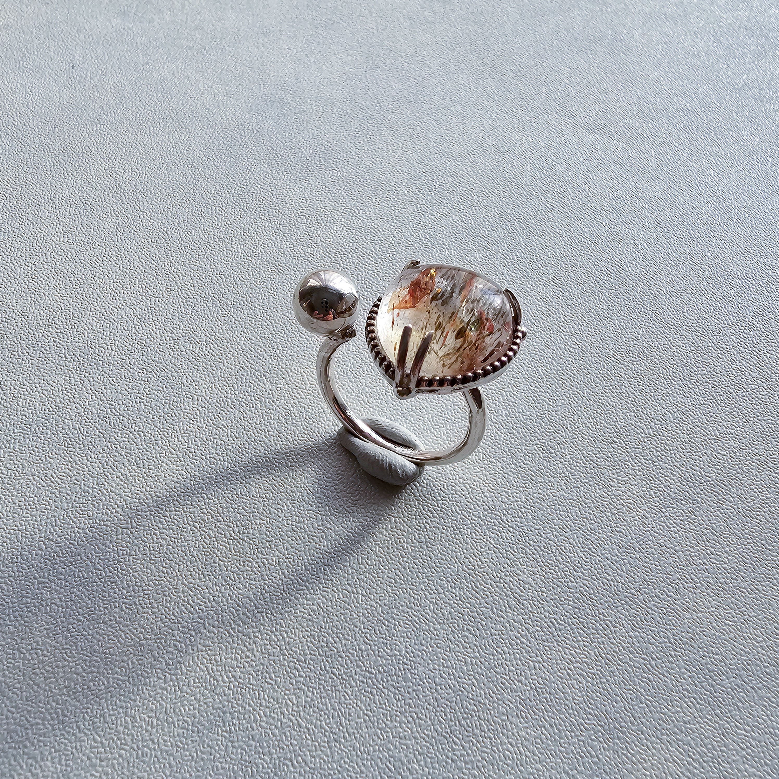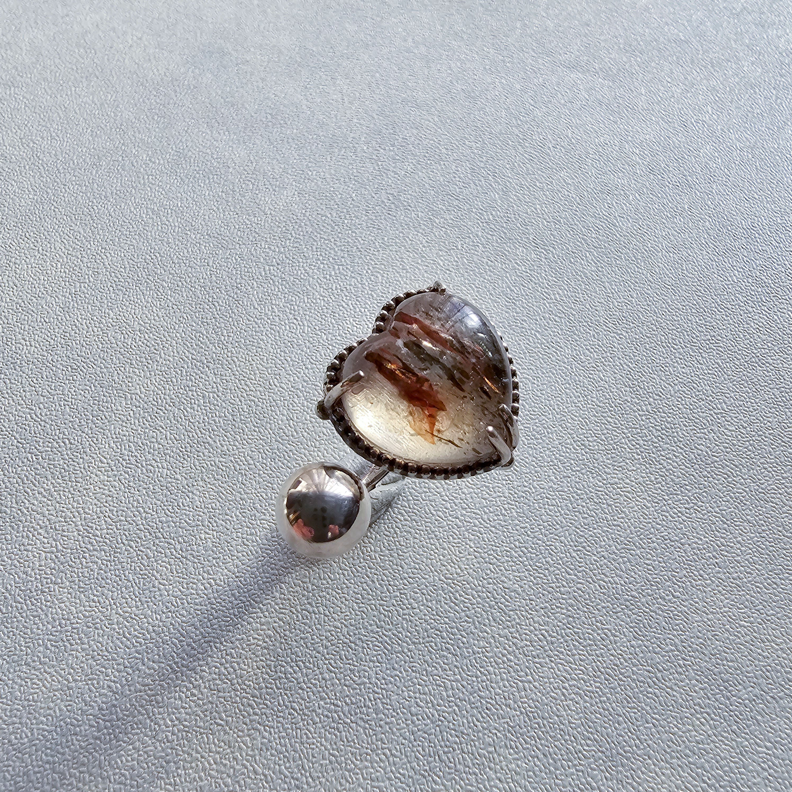 マイカインクォーツ ハートシェイプリング ホワイト |石景をミル枠に閉じ込めた一点物シルバー Silver925
