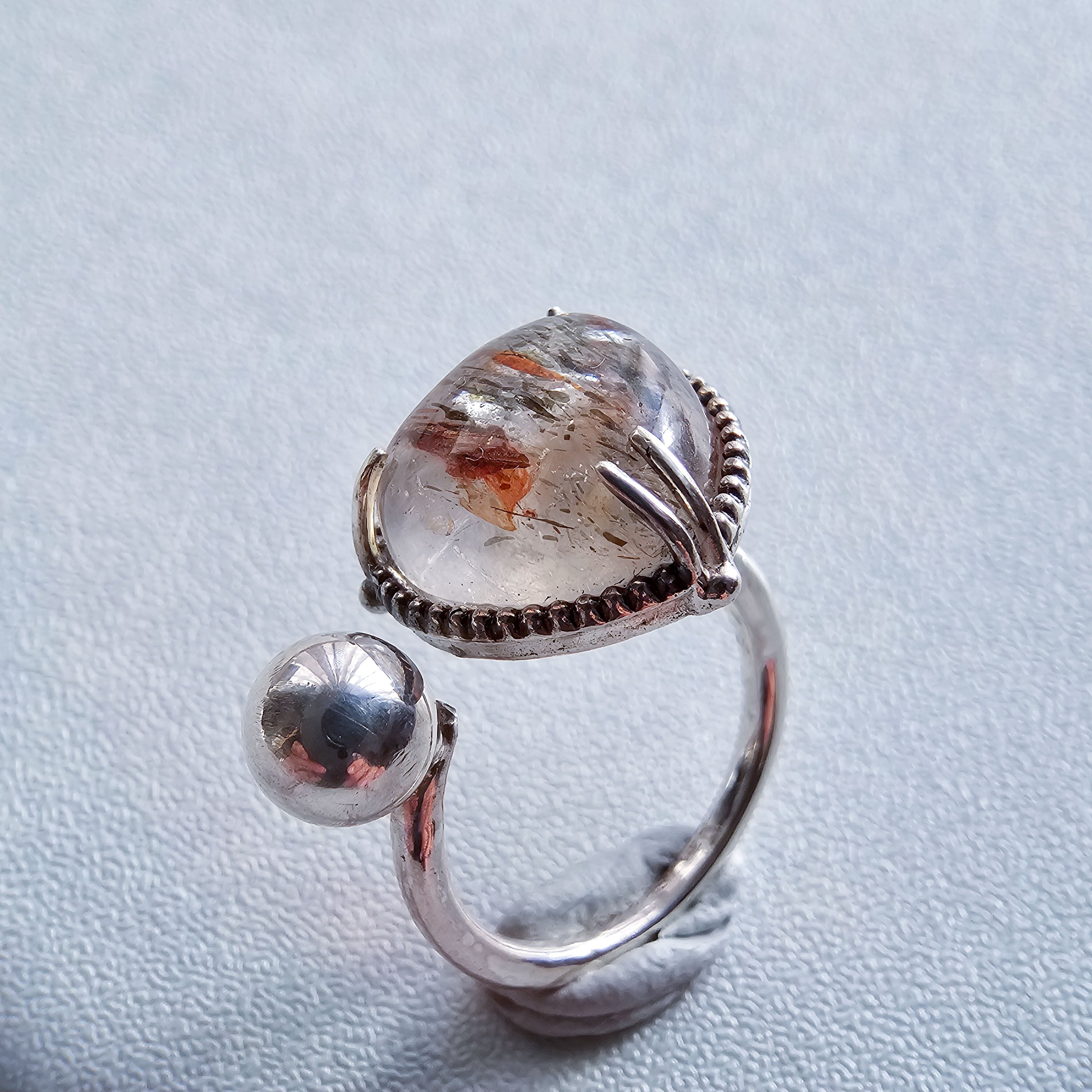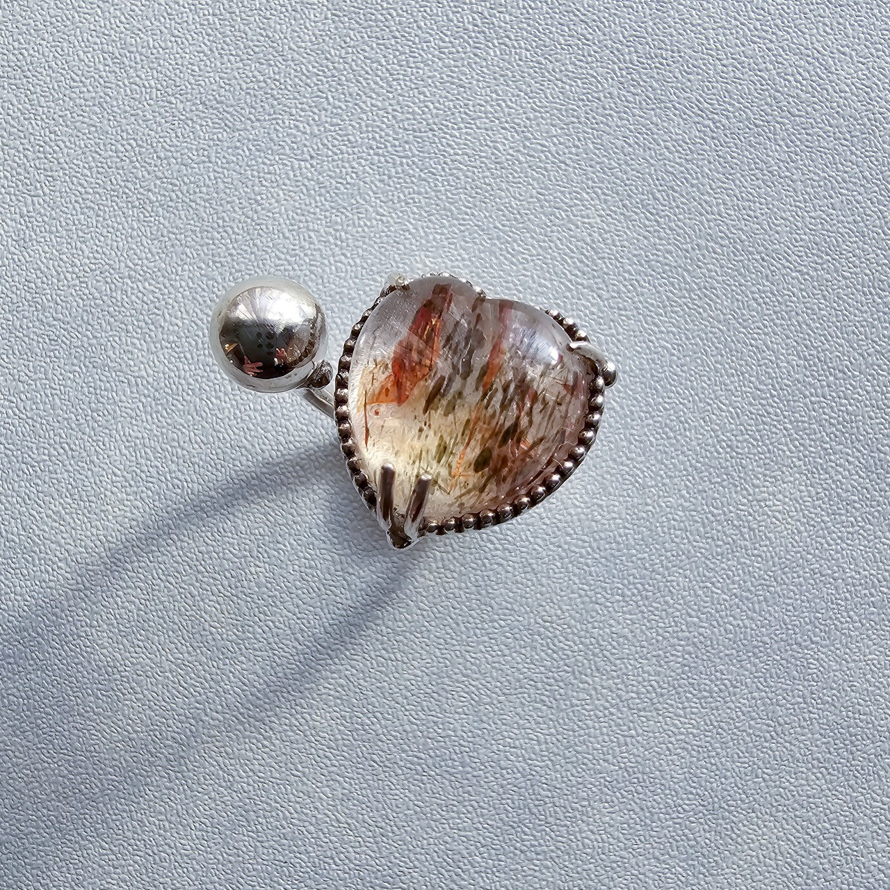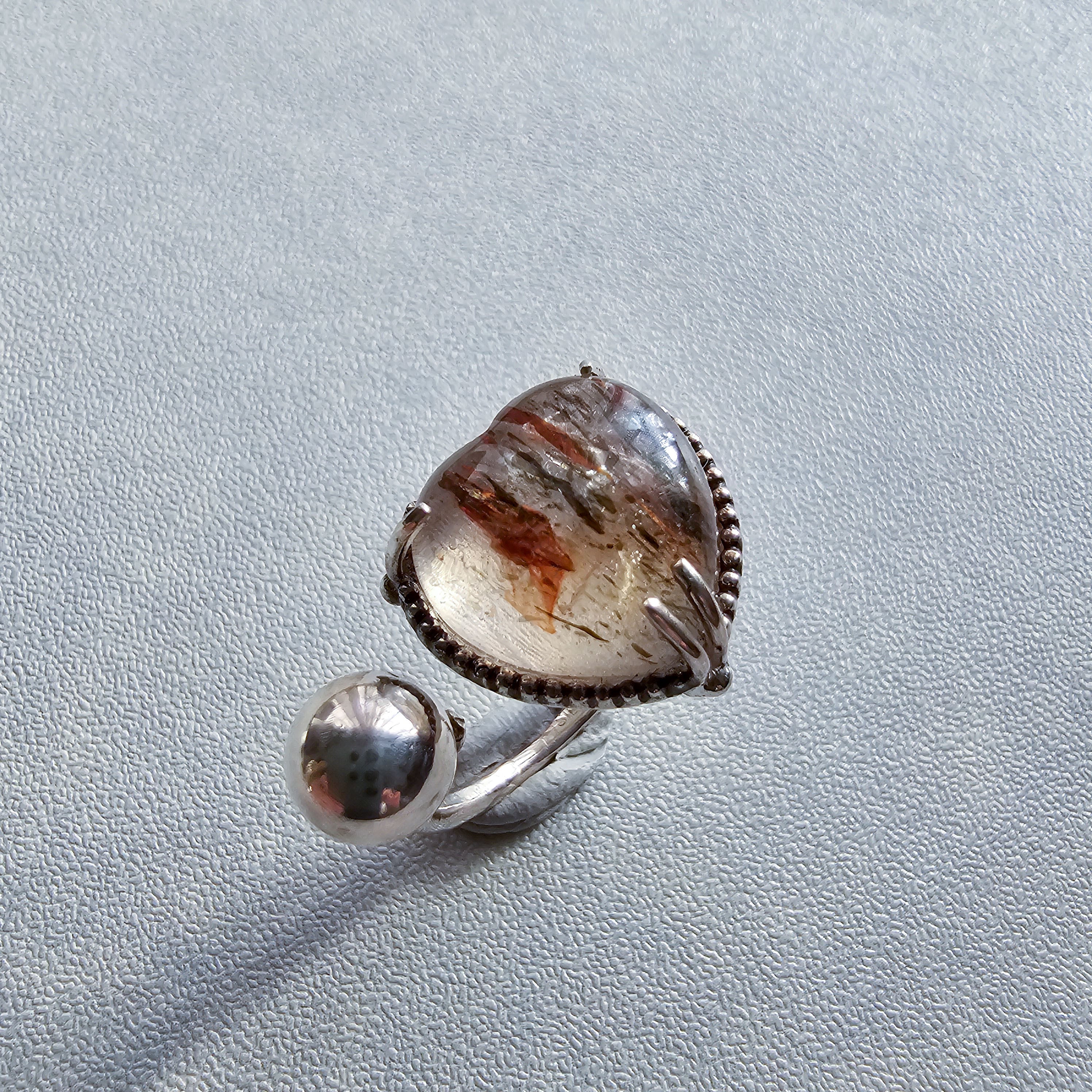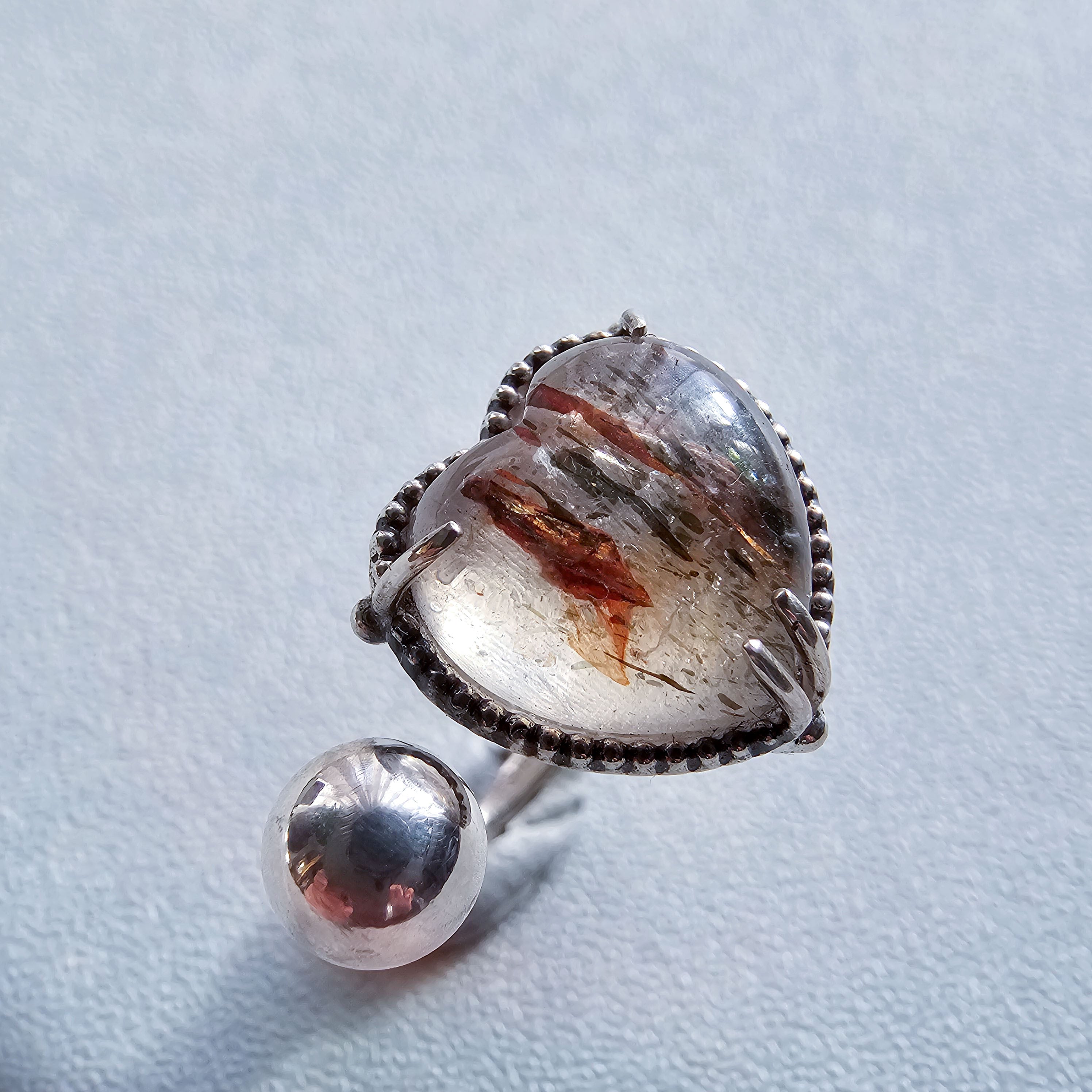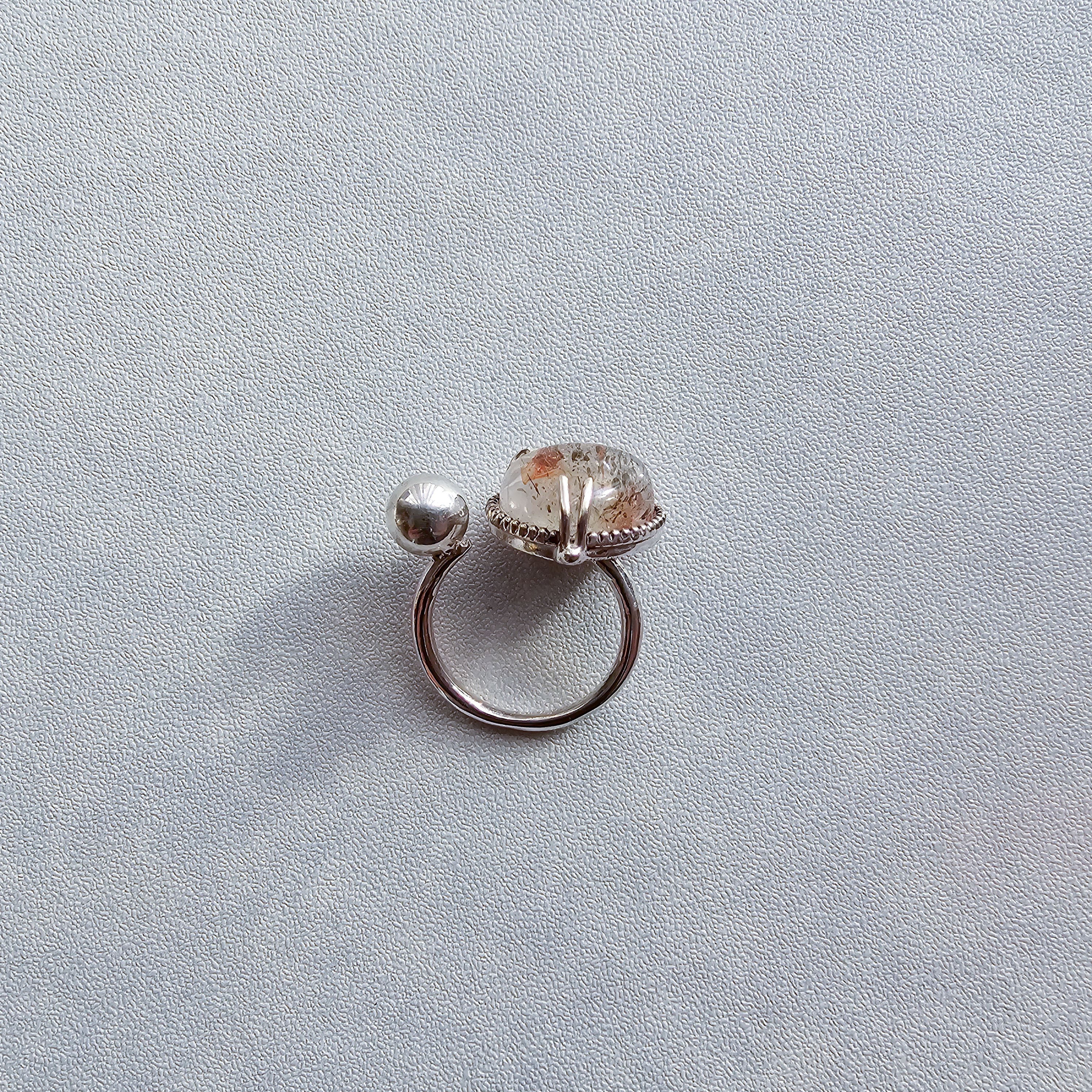マイカインクォーツ ハートシェイプリング ホワイト |石景をミル枠に閉じ込めた一点物シルバー Silver925