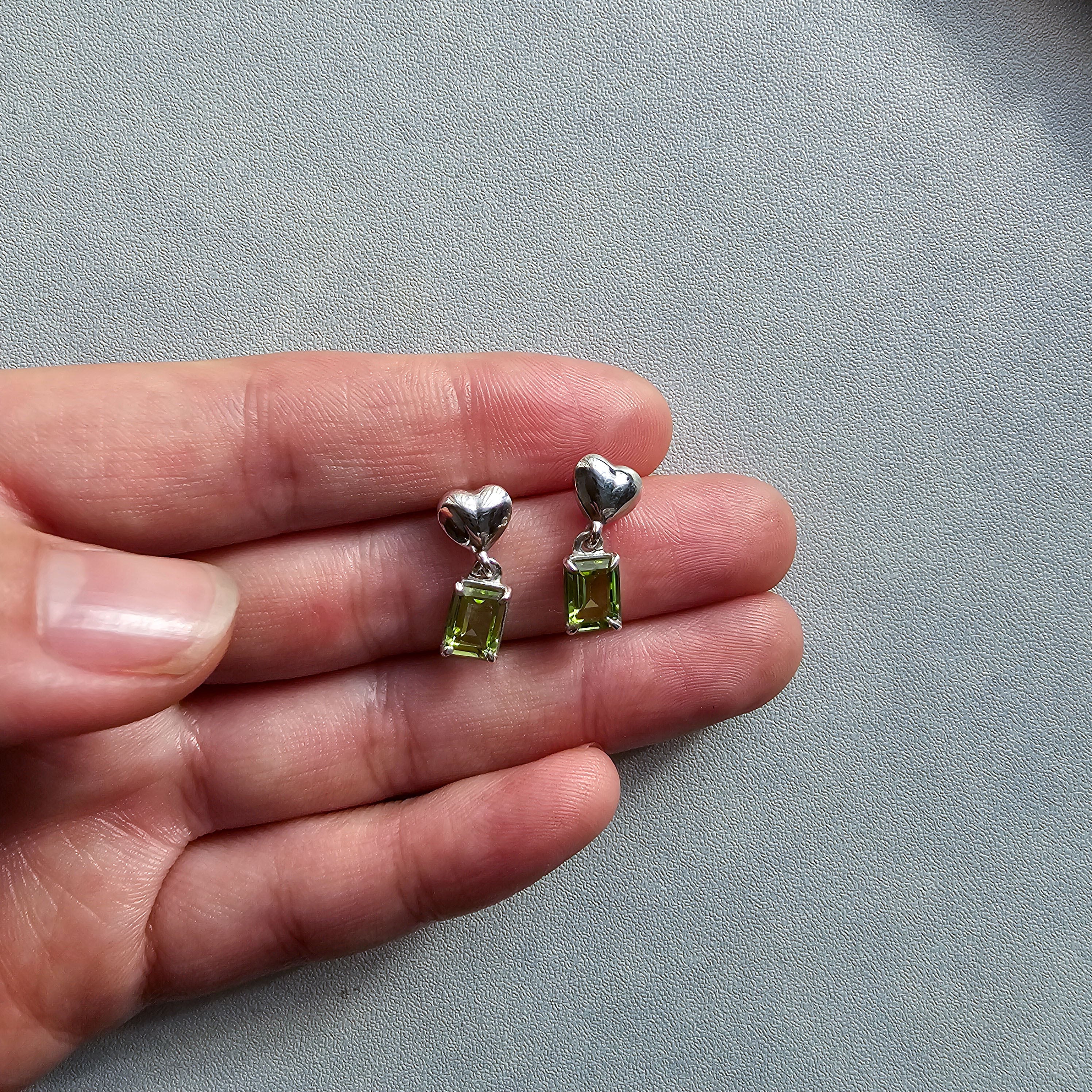 ハートモチーフ ペリドット ピアス シルバー925|鮮やかな緑が揺れる大人可愛い耳元 一点もの Silver925