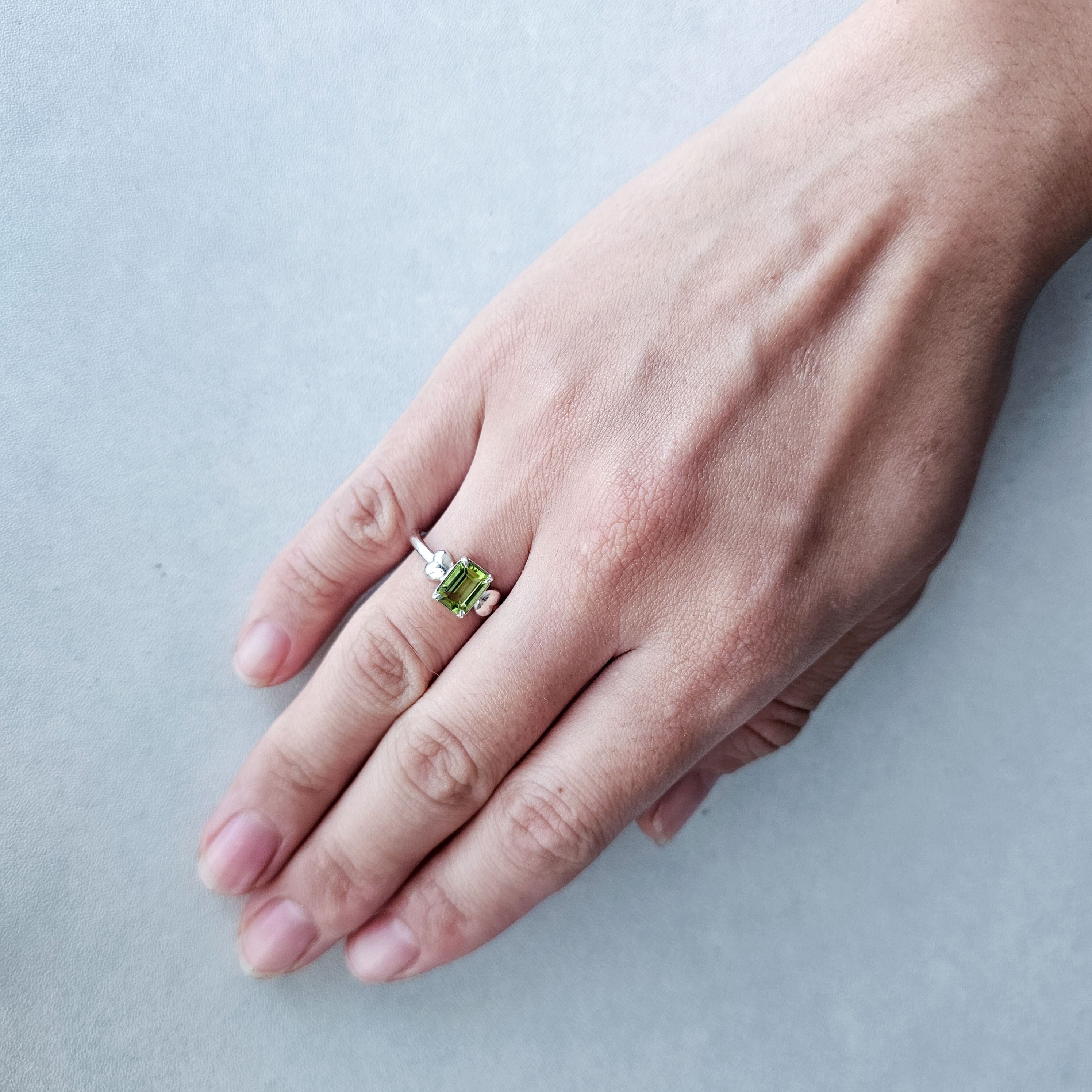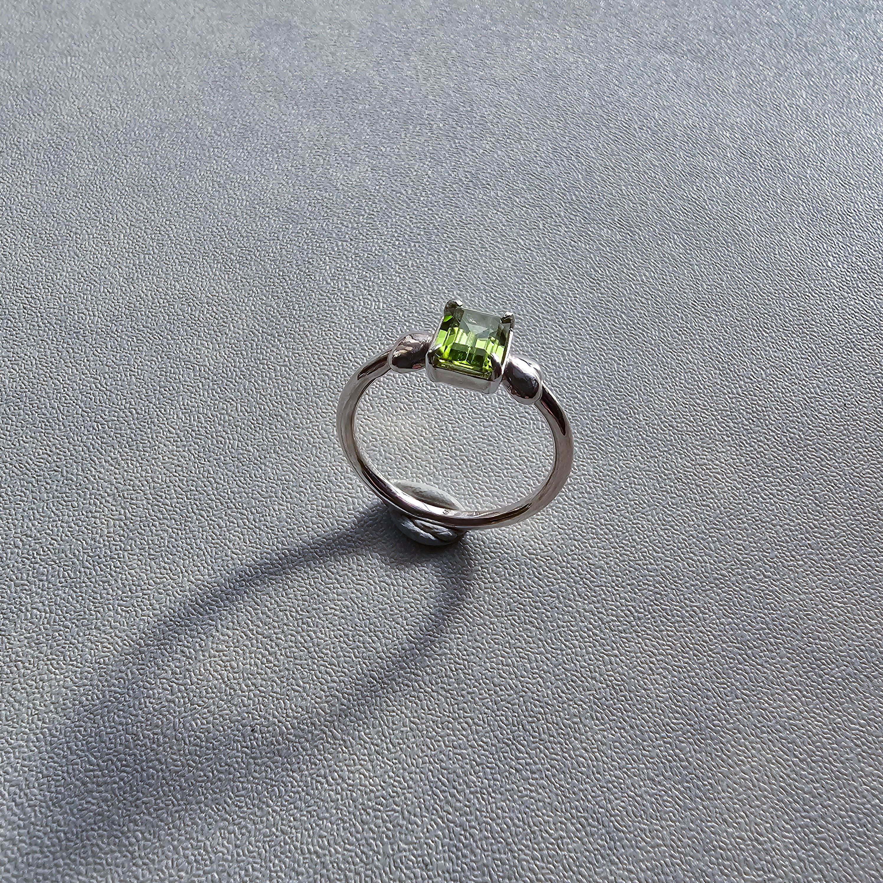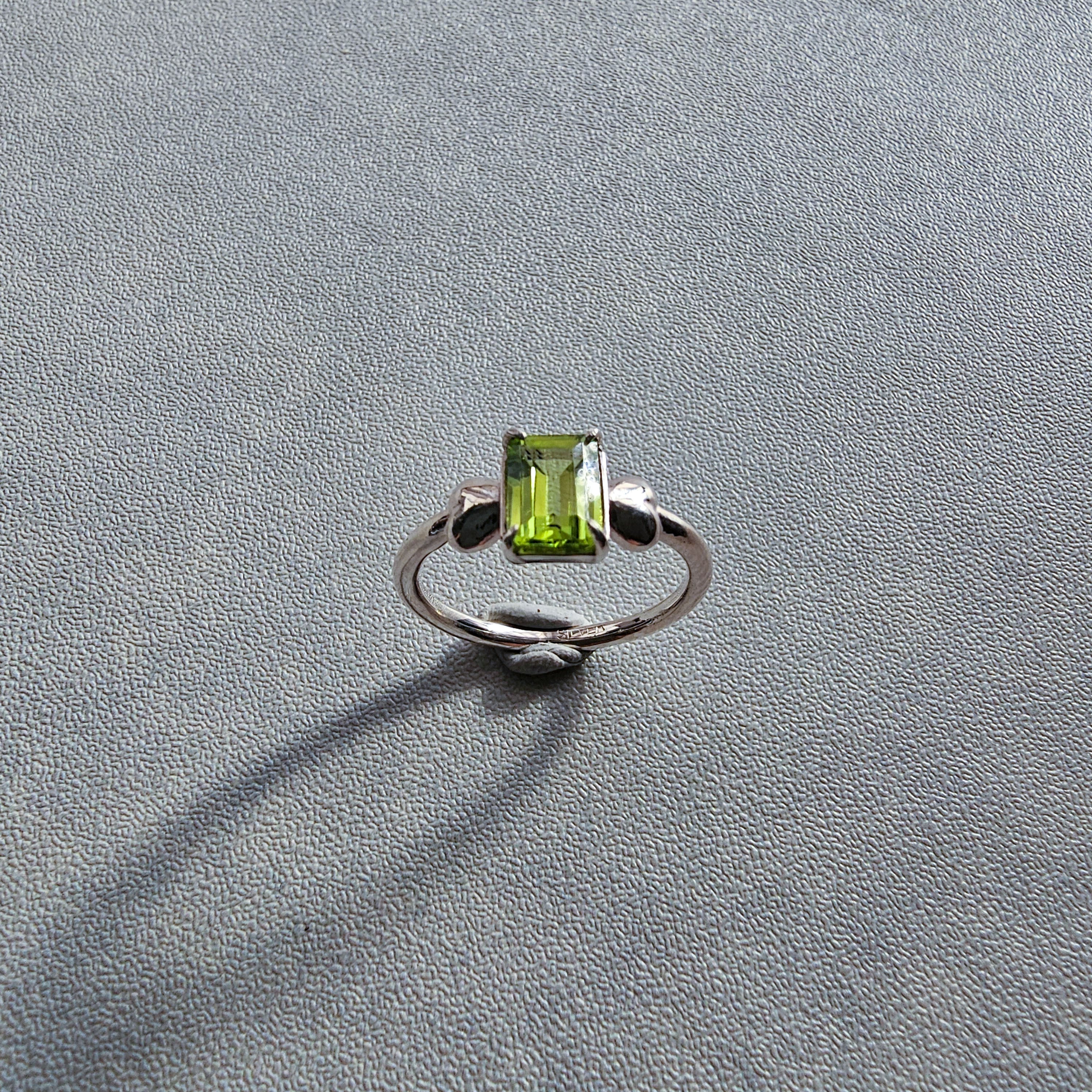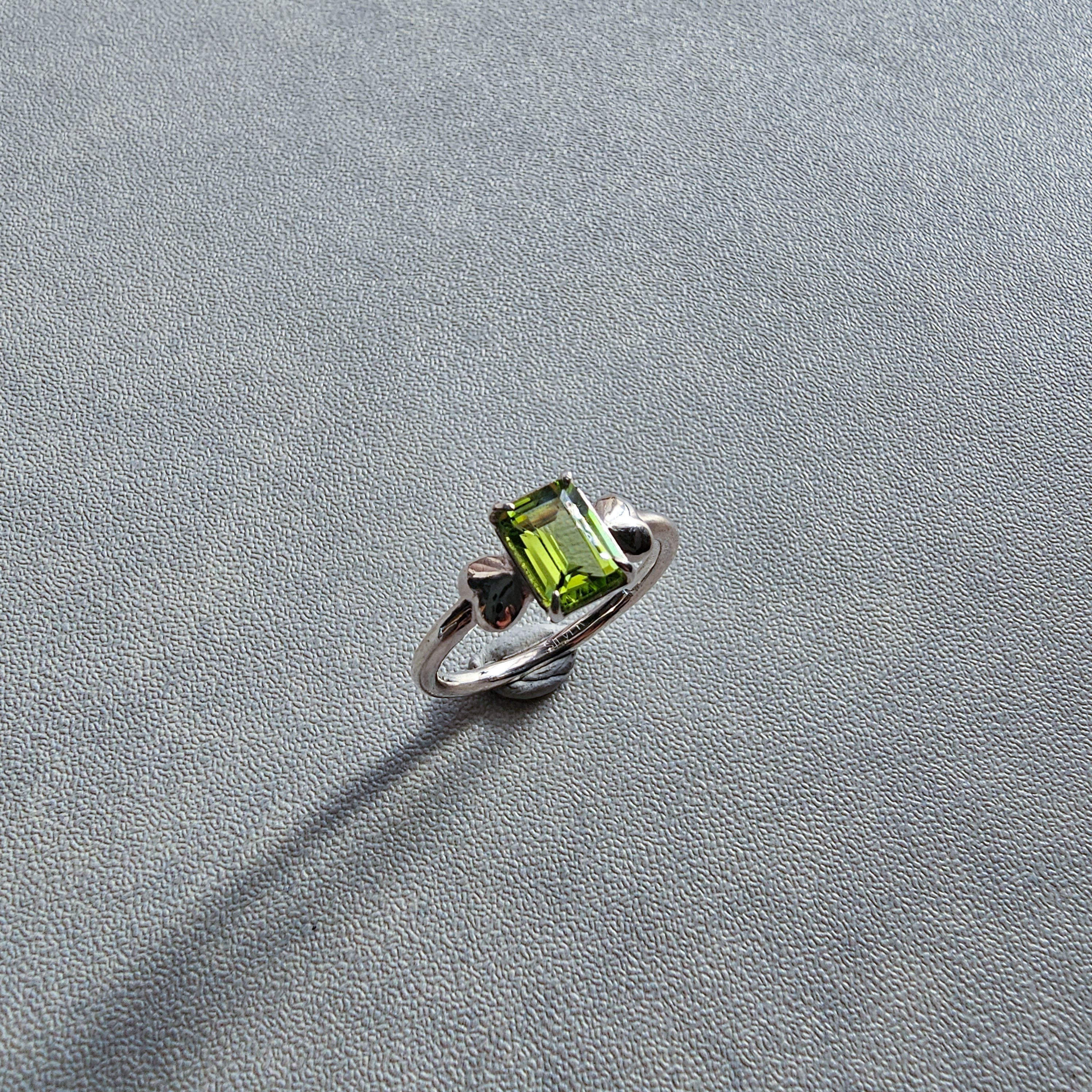 鮮やかグリーンが指先で輝く|ペリドット エメラルドカット シルバーリング 一点もの Silver925