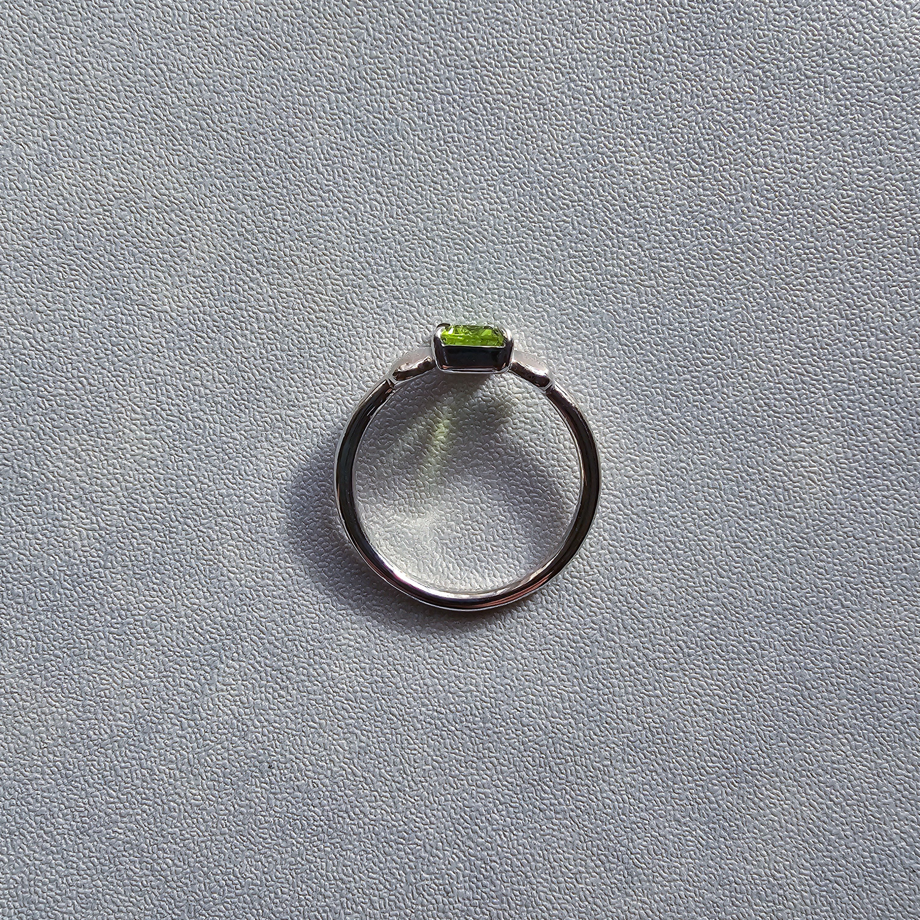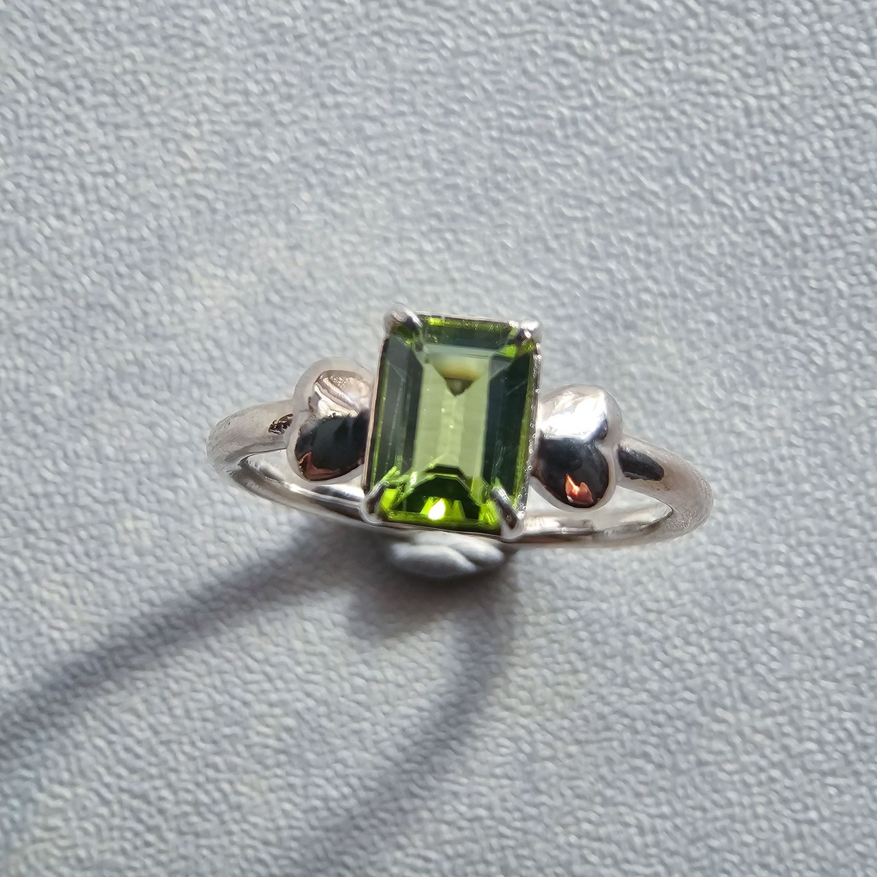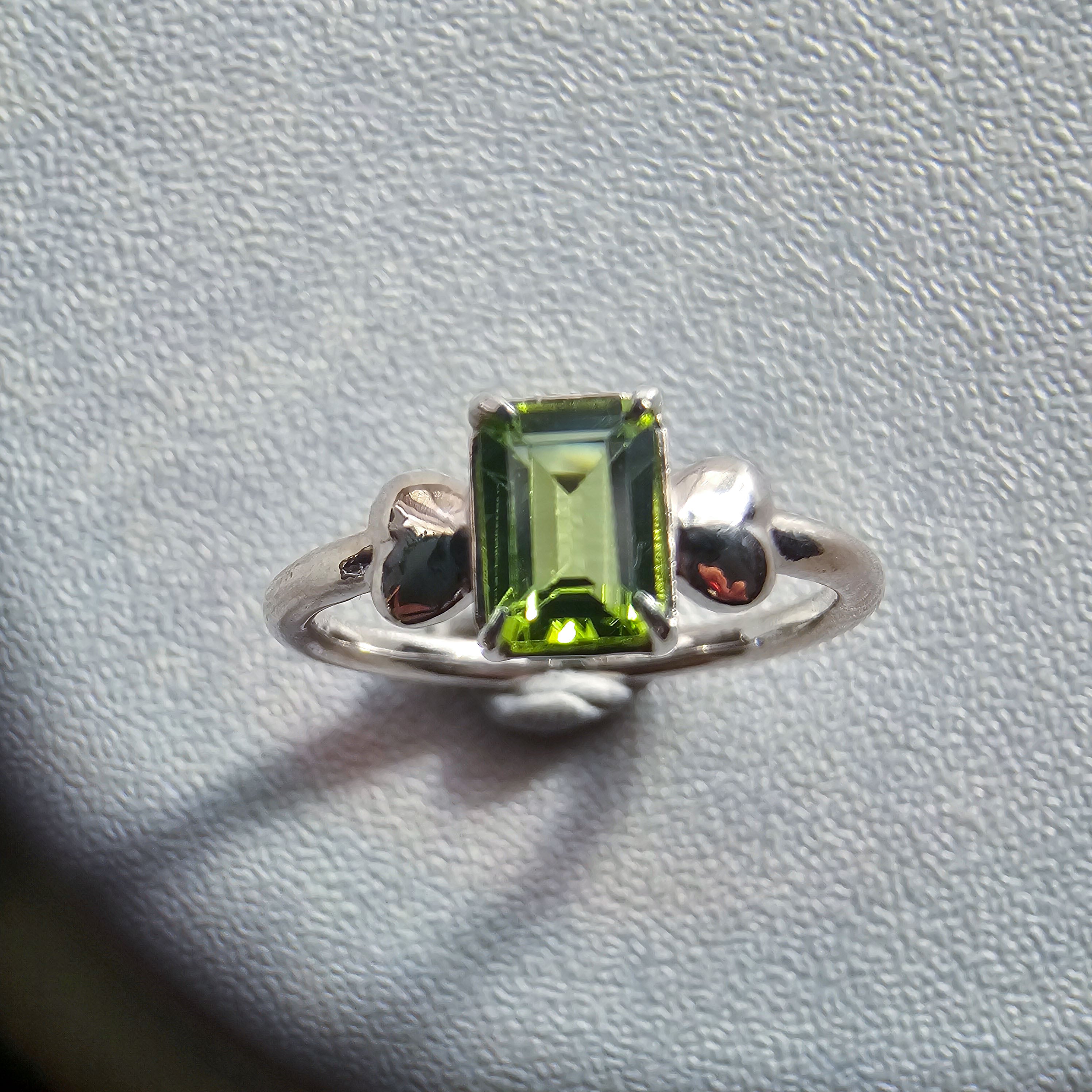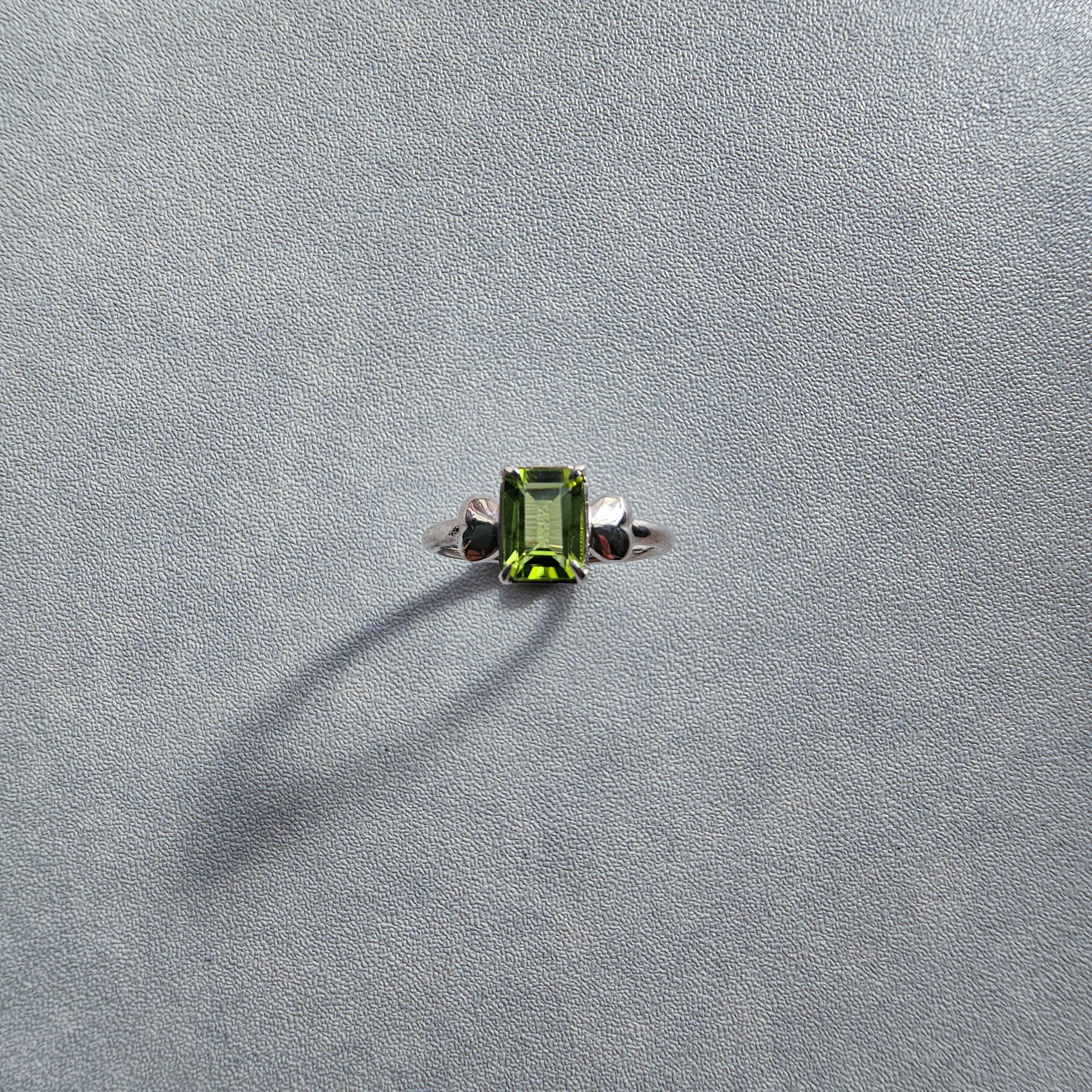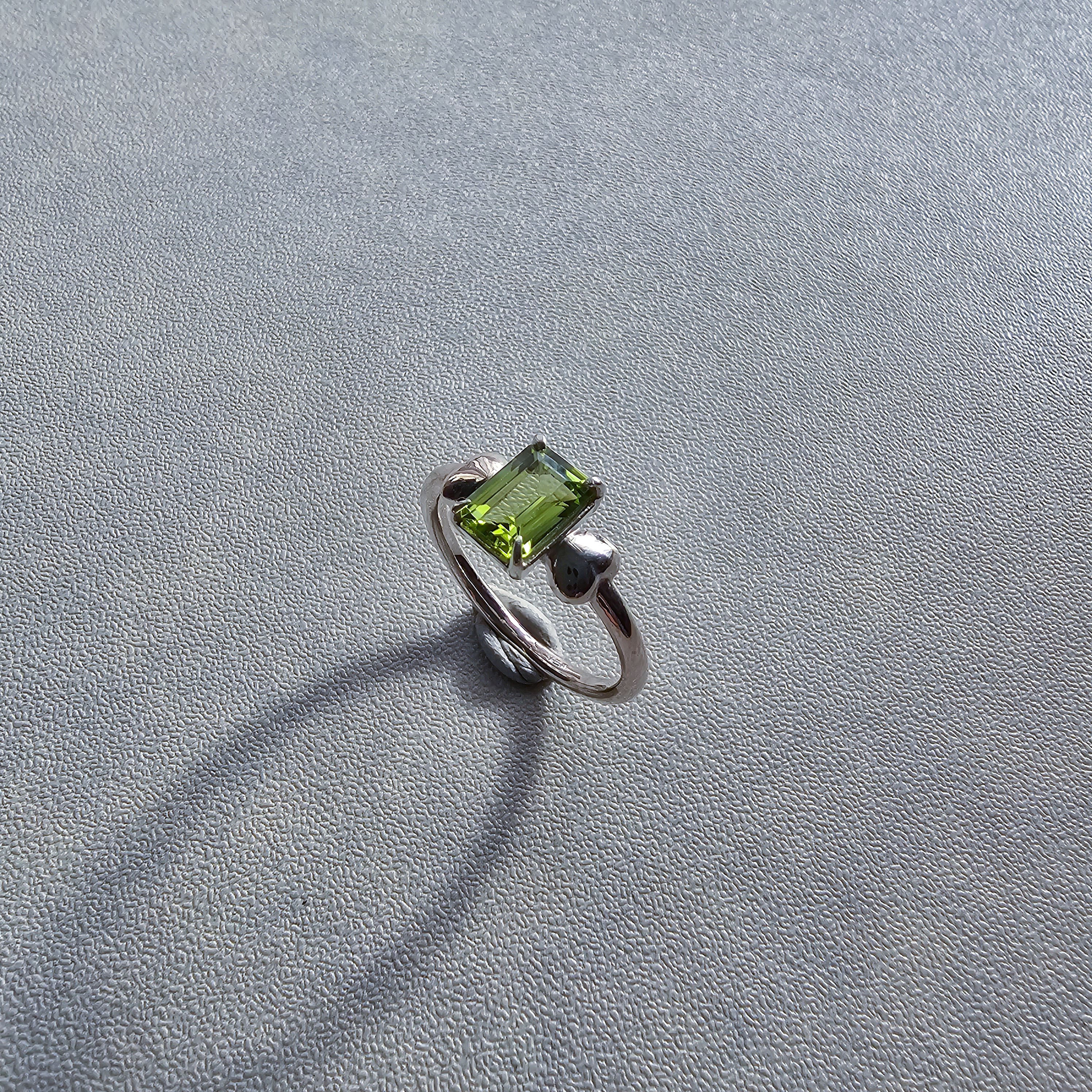 鮮やかグリーンが指先で輝く|ペリドット エメラルドカット シルバーリング 一点もの Silver925
