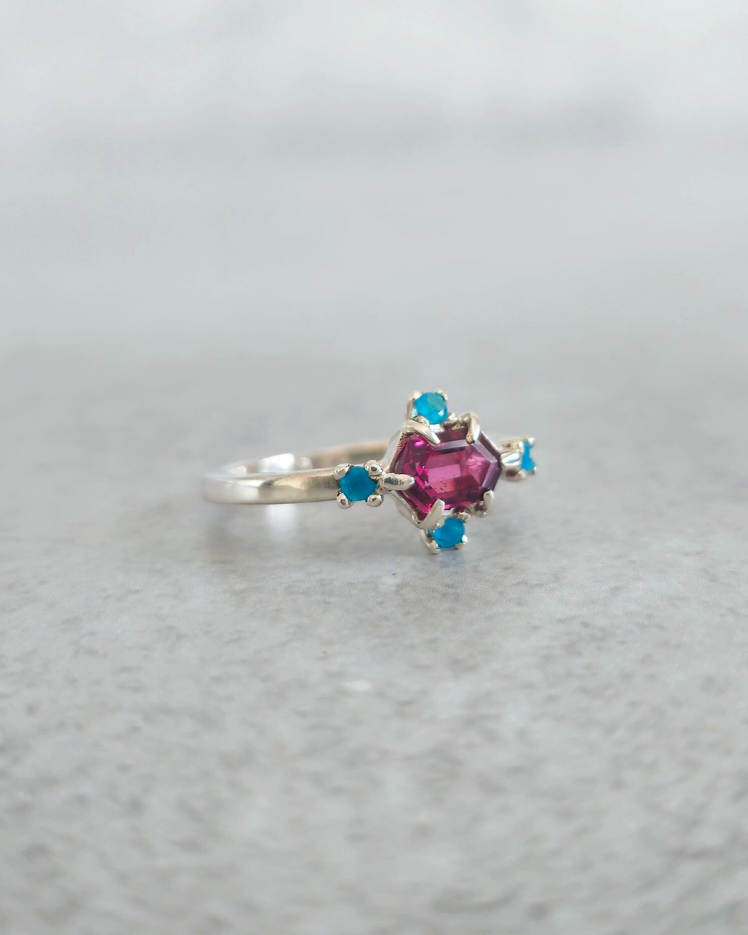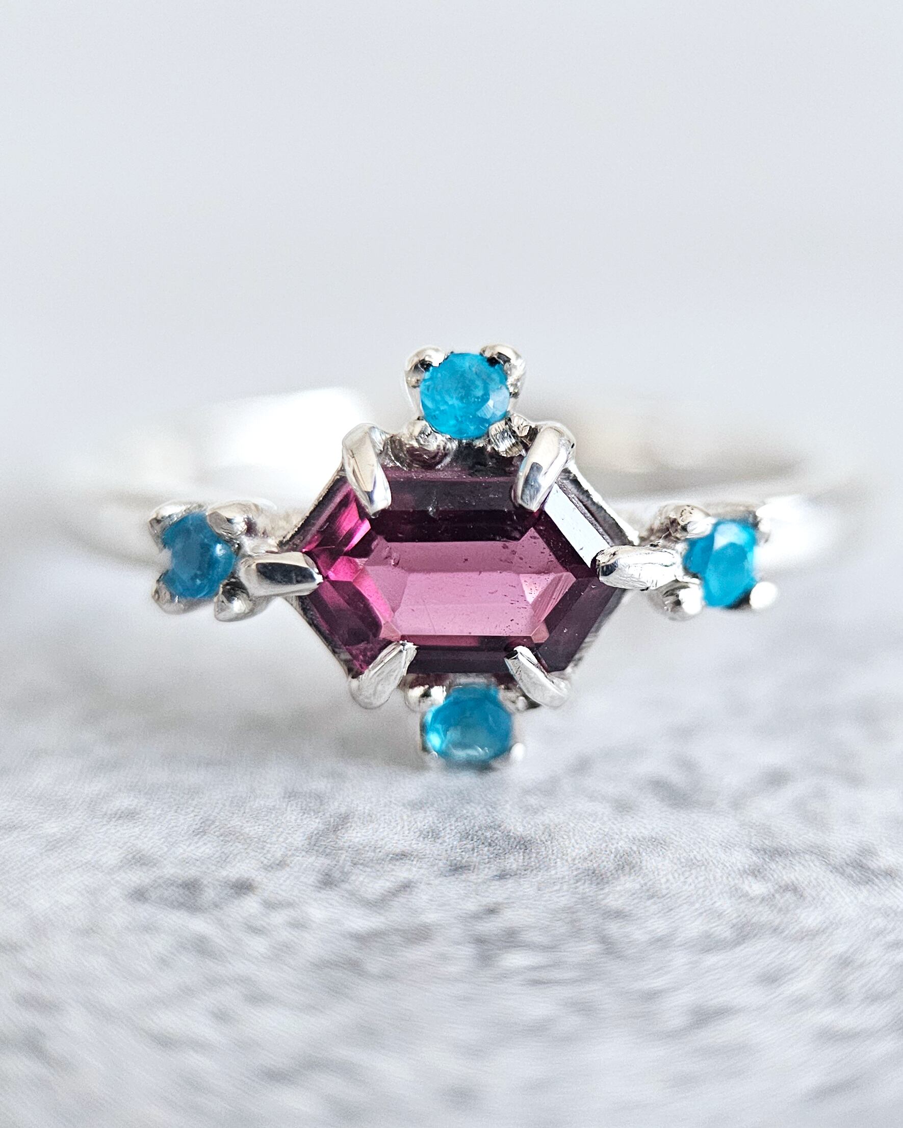 マラヤガーネット & ネオンアパタイト ハンドメイドリング|Silver925| 天然石 マルチストーン ジュエリー