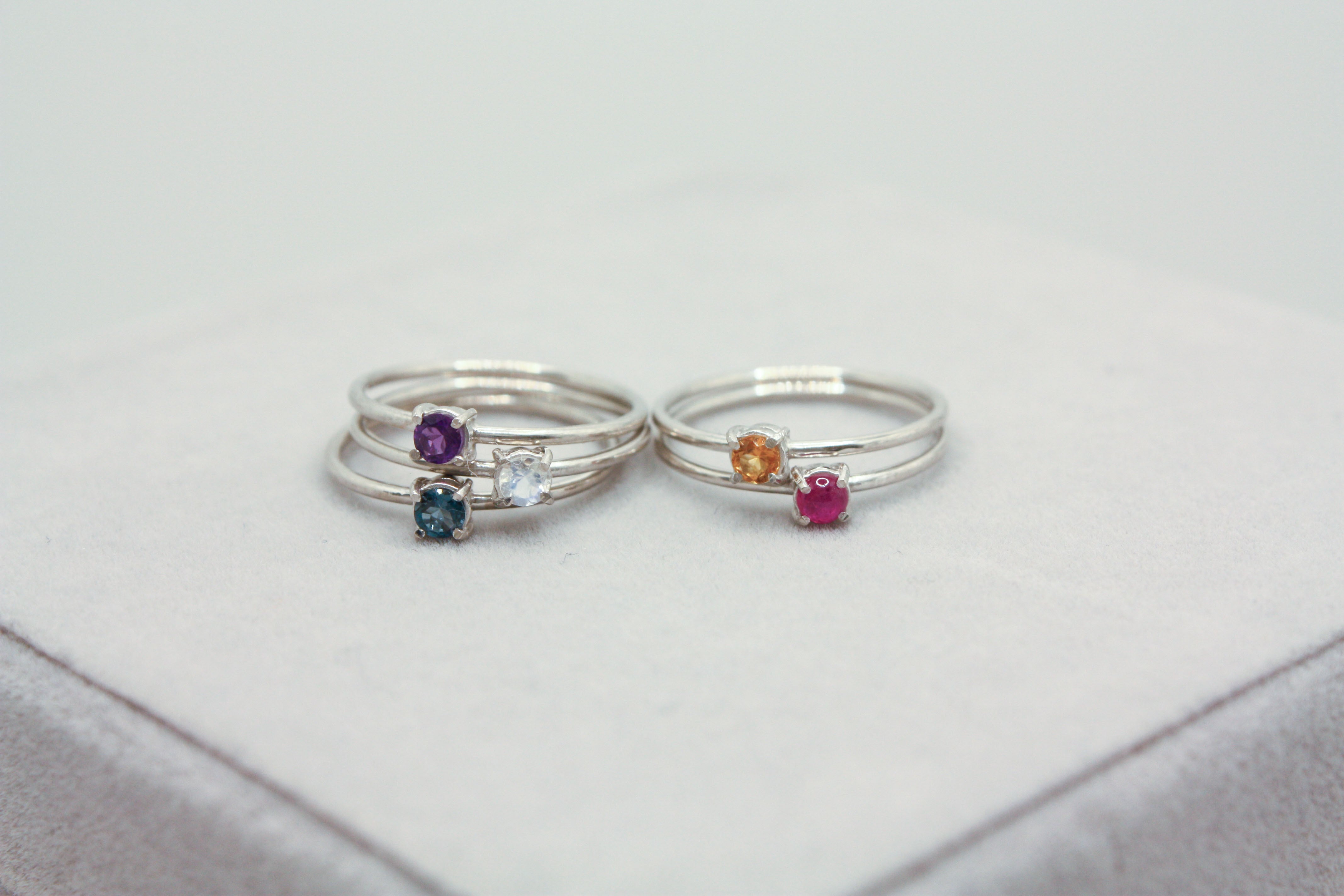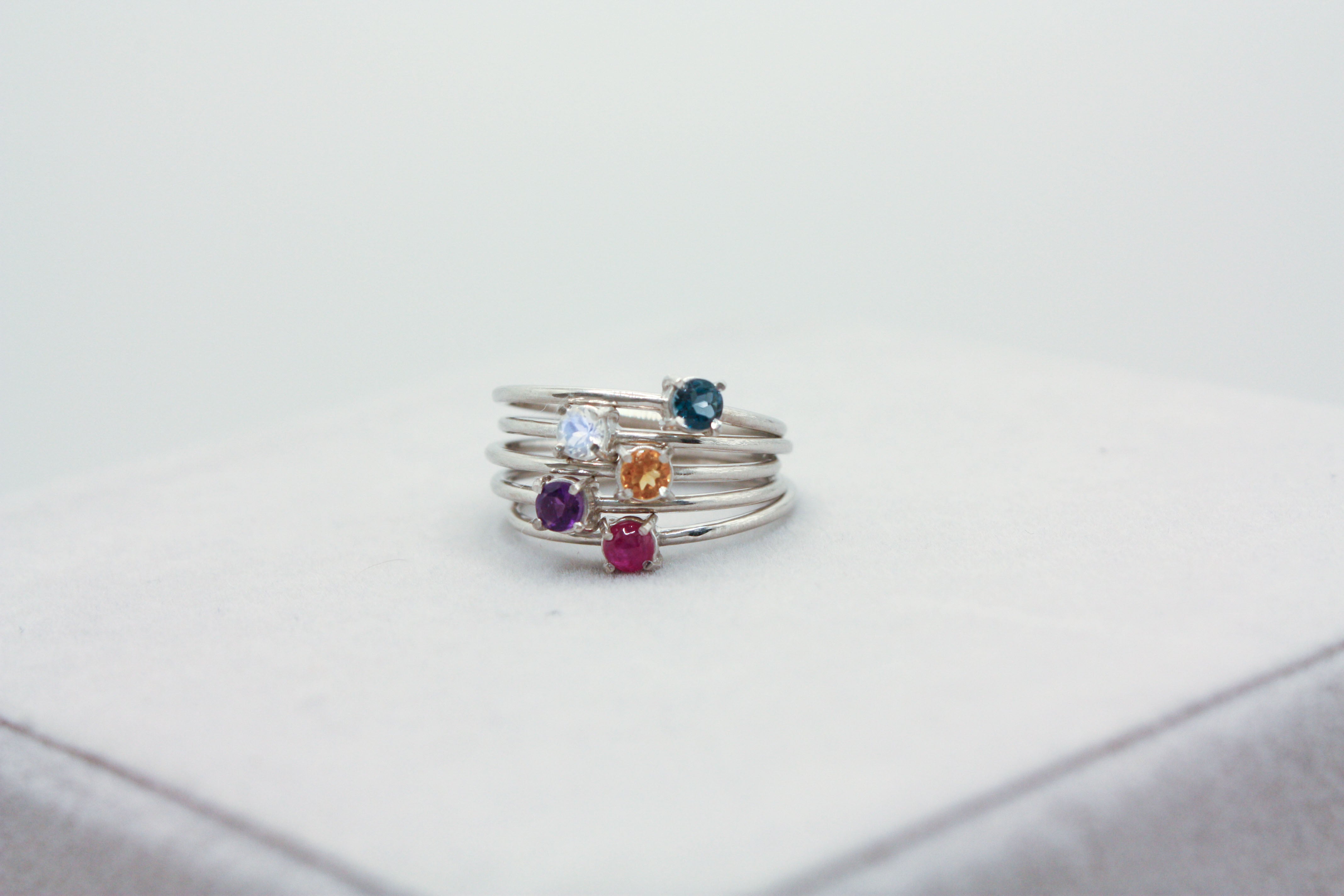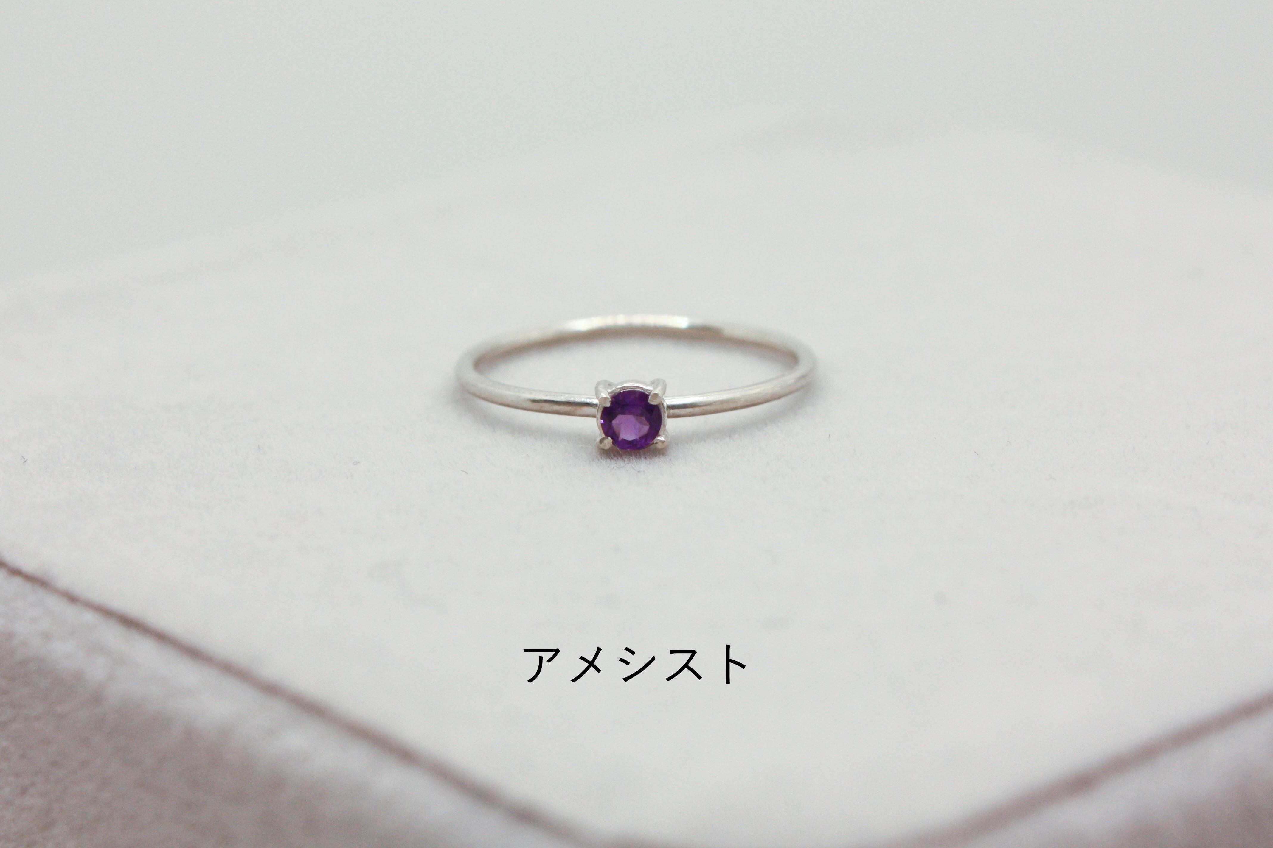 一粒石リング同士を合わせてもいいですし、シンプルなリングのポイントにも。