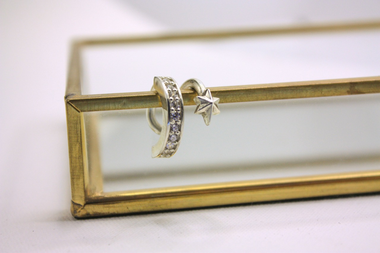 キラキラ輝く石と星のモチーフが、耳元を煌びやかに彩ります。