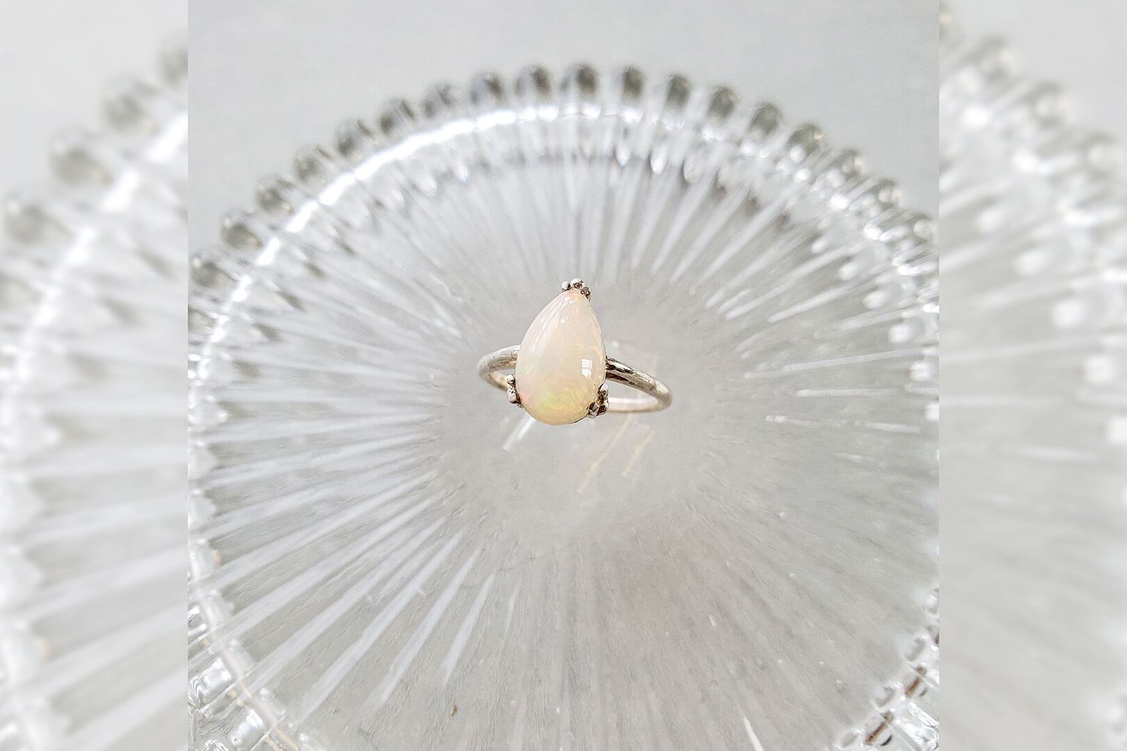 ホワイトオパールの柔らかな輝きが、指元を優雅に彩ります。