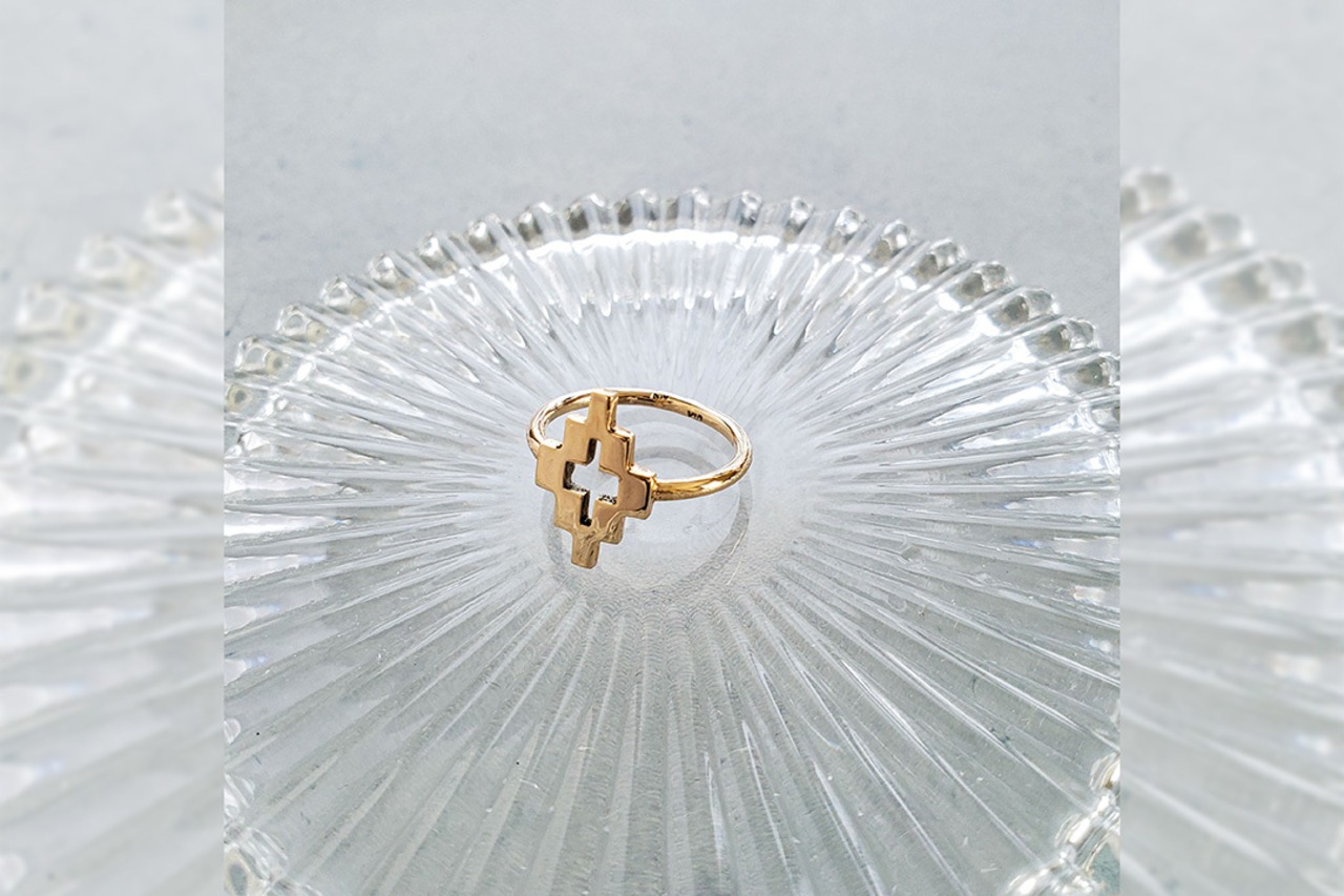 十字架デザインを施した10K(10金)製の指輪です。